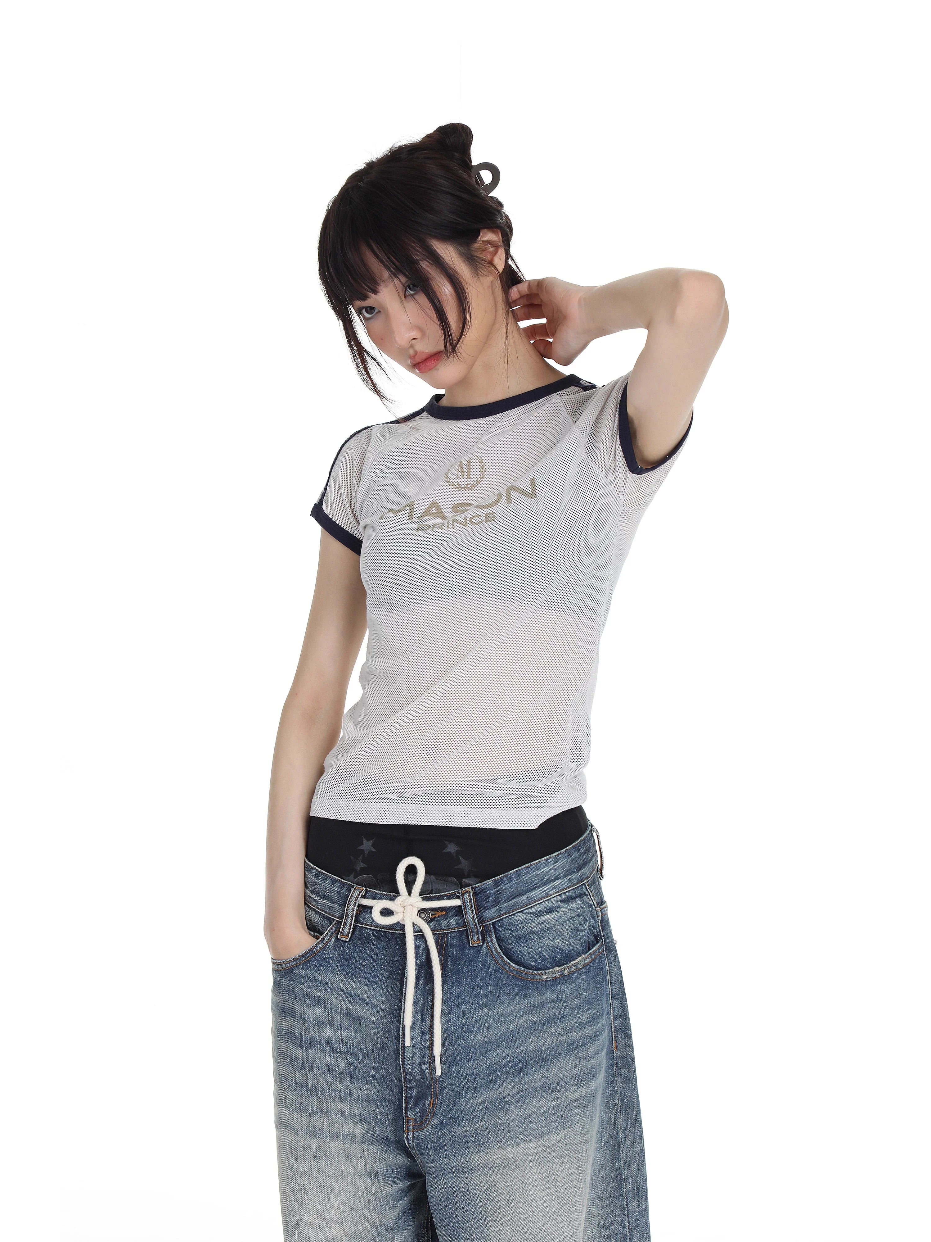 MASONPRINCE Summer Striped Mesh Slim Fit T-Shirt with Structured Shoulders