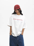 The front features embroidered faded red and pink text artwork, including the word "UNISEX" beneath a bold central logo, providing a unique vintage aesthetic. Ideal for laid-back settings, this t-shirt pairs effortlessly with jeans or casual trousers to complete a youthful and effortless style.