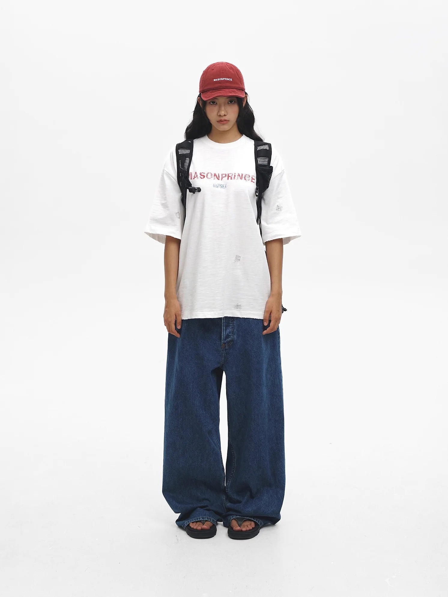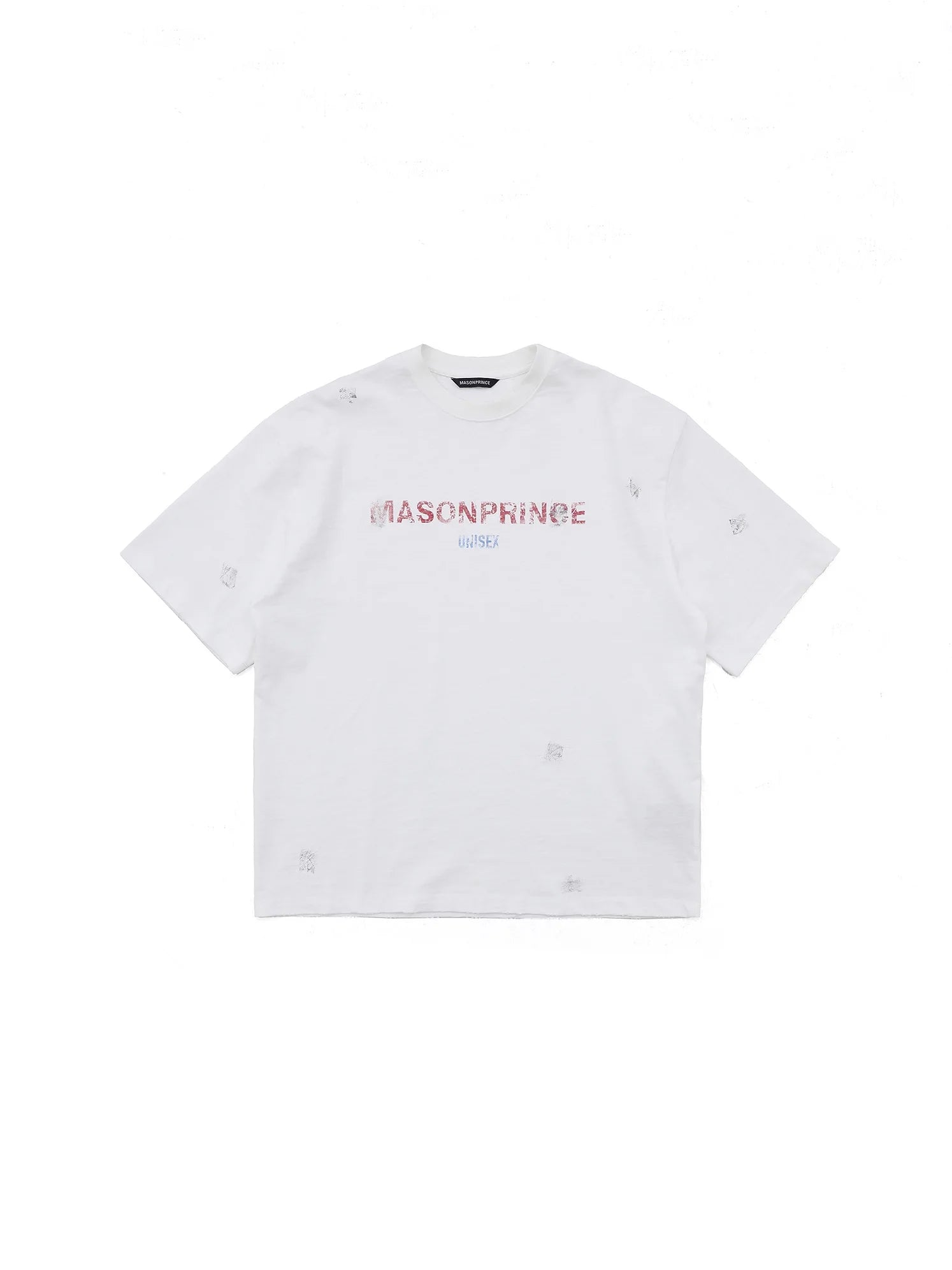 MASONPRINCE Unisex Distressed Embroidered Slub Cotton Loose T-Shirt