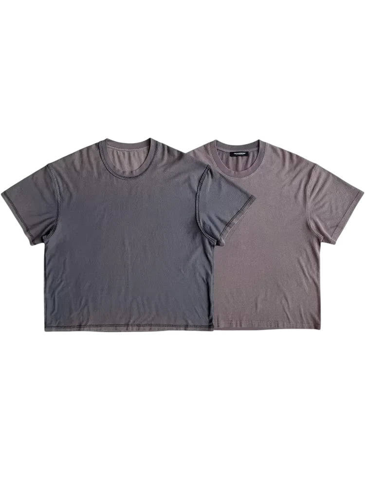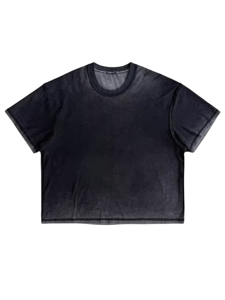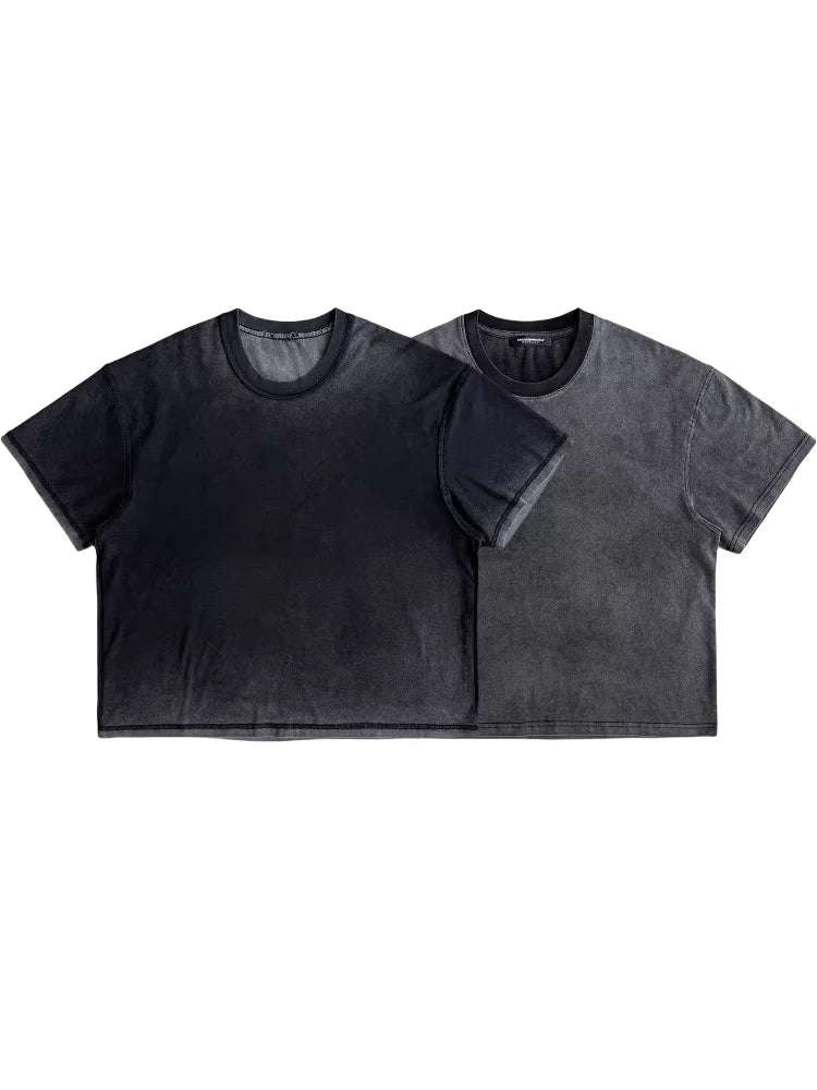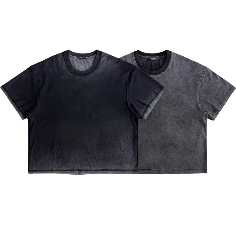 This men's short-sleeve t-shirt features a vintage-inspired washed black finish with a sun-faded gradient effect. Designed with a relaxed fit and classic crew neckline, it offers both comfort and contemporary style. The brushed fabric and subtly distressed edges add to its laid-back aesthetic, while its reversible design enhances versatility. Perfect for casual, everyday wear.
