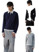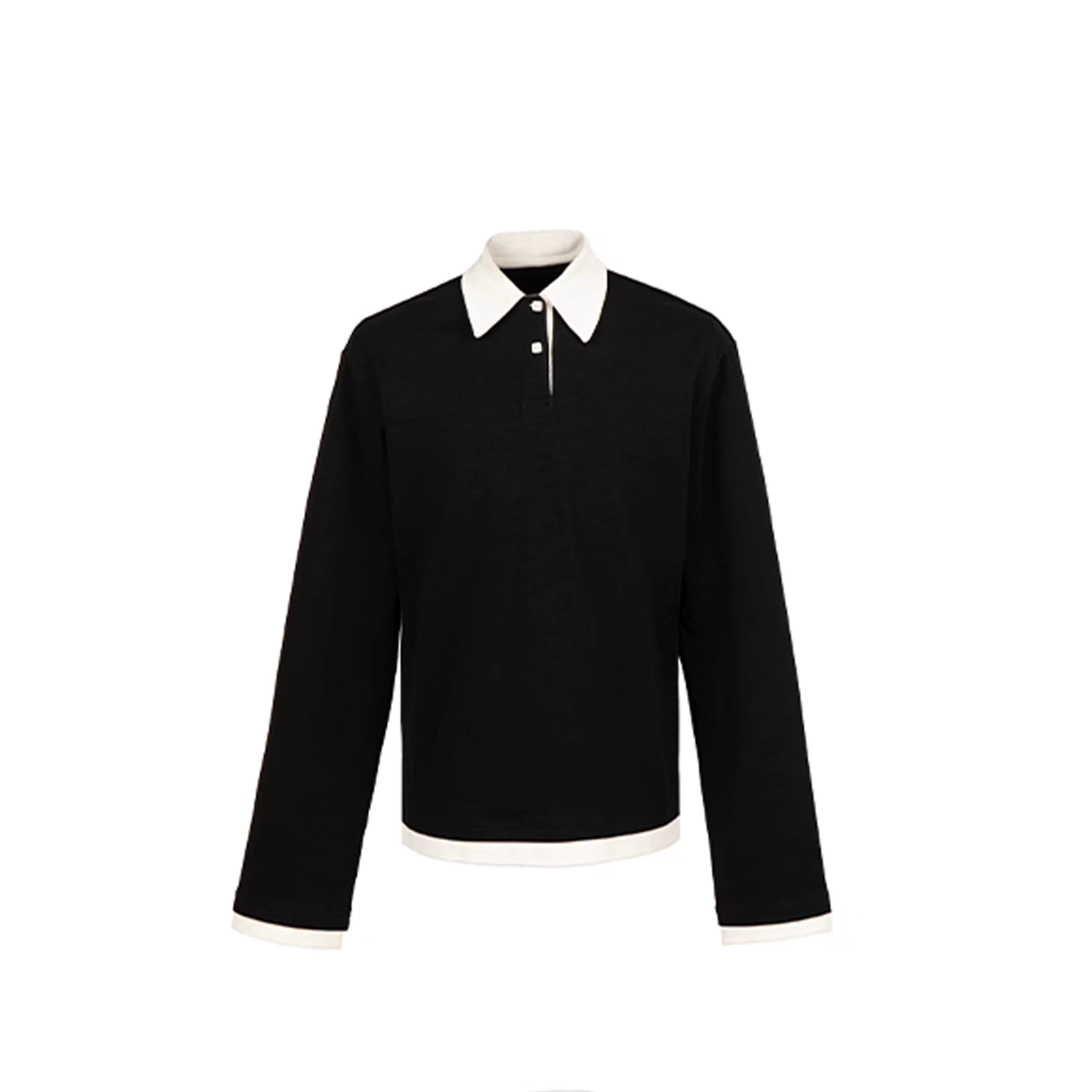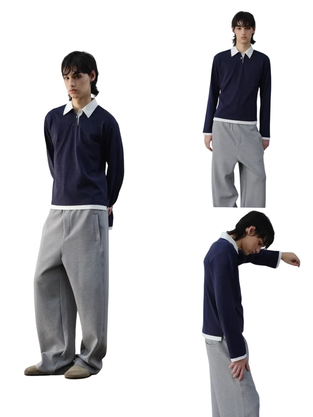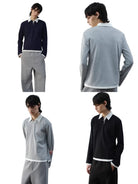 VLABMADE Men's Contrast Collar Long Sleeve Polo Shirt