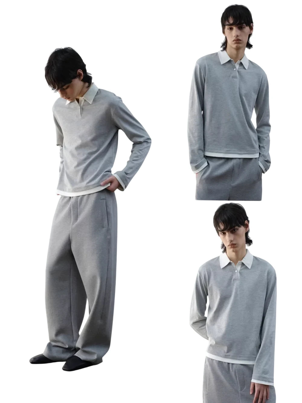 Elevate your casual wardrobe with this men's long sleeve polo shirt, featuring a vintage-inspired textured design. The shirt showcases a contrast polo collar, button placket, and white accents at the cuffs and hem for a layered, refined look. With its relaxed fit and classic styling, this top pairs effortlessly with joggers or shorts for laid-back sophistication.