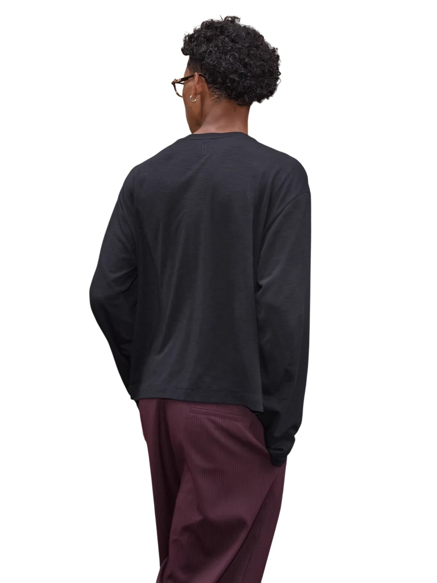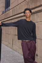 Elevate your casual wardrobe with this relaxed-fit long sleeve t-shirt, crafted from slub textured fabric for a soft, lived-in feel. Featuring subtle embroidery and a classic crew neck design, it offers a minimalist style perfect for everyday wear. Designed for a comfortable, laid-back look, this shirt pairs effortlessly with a variety of casual bottoms.