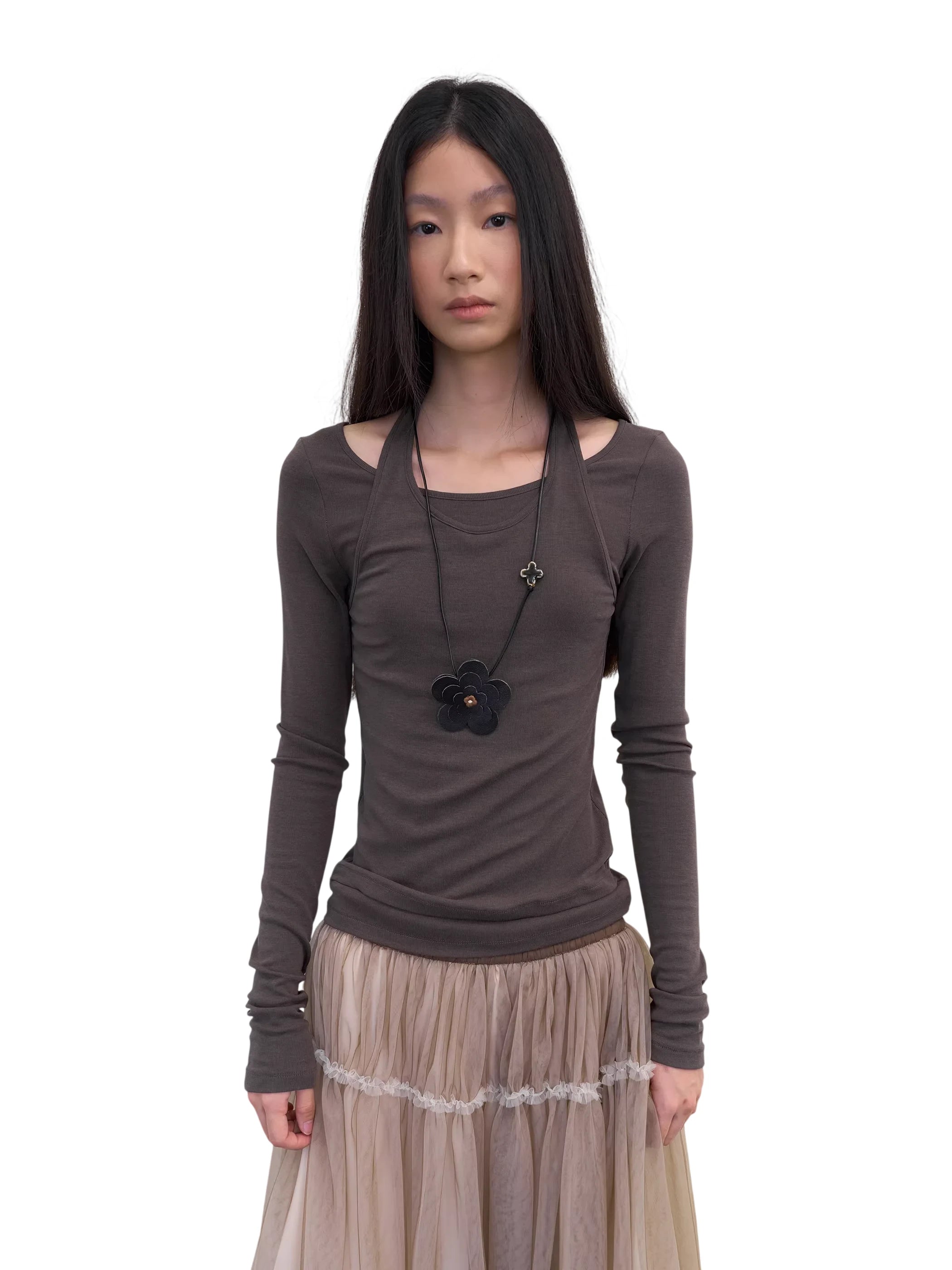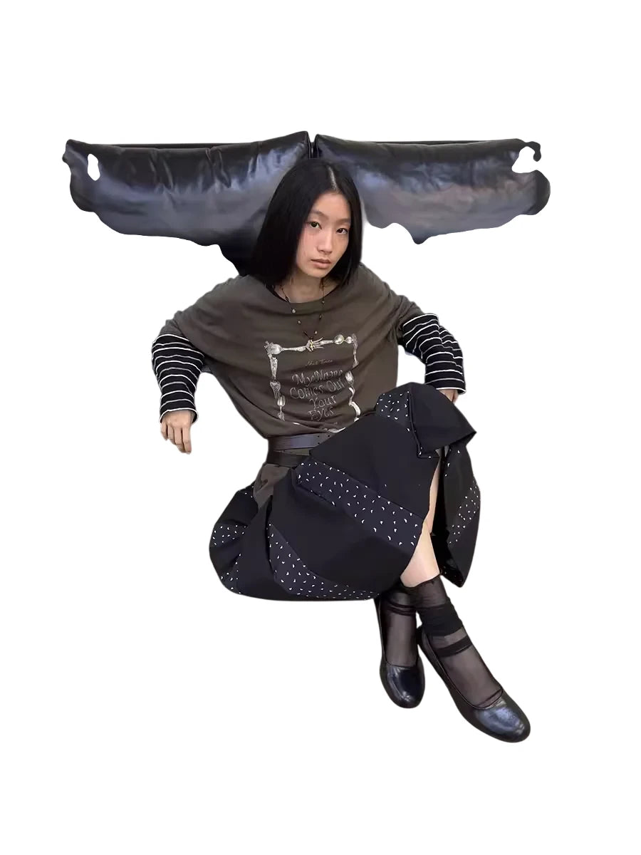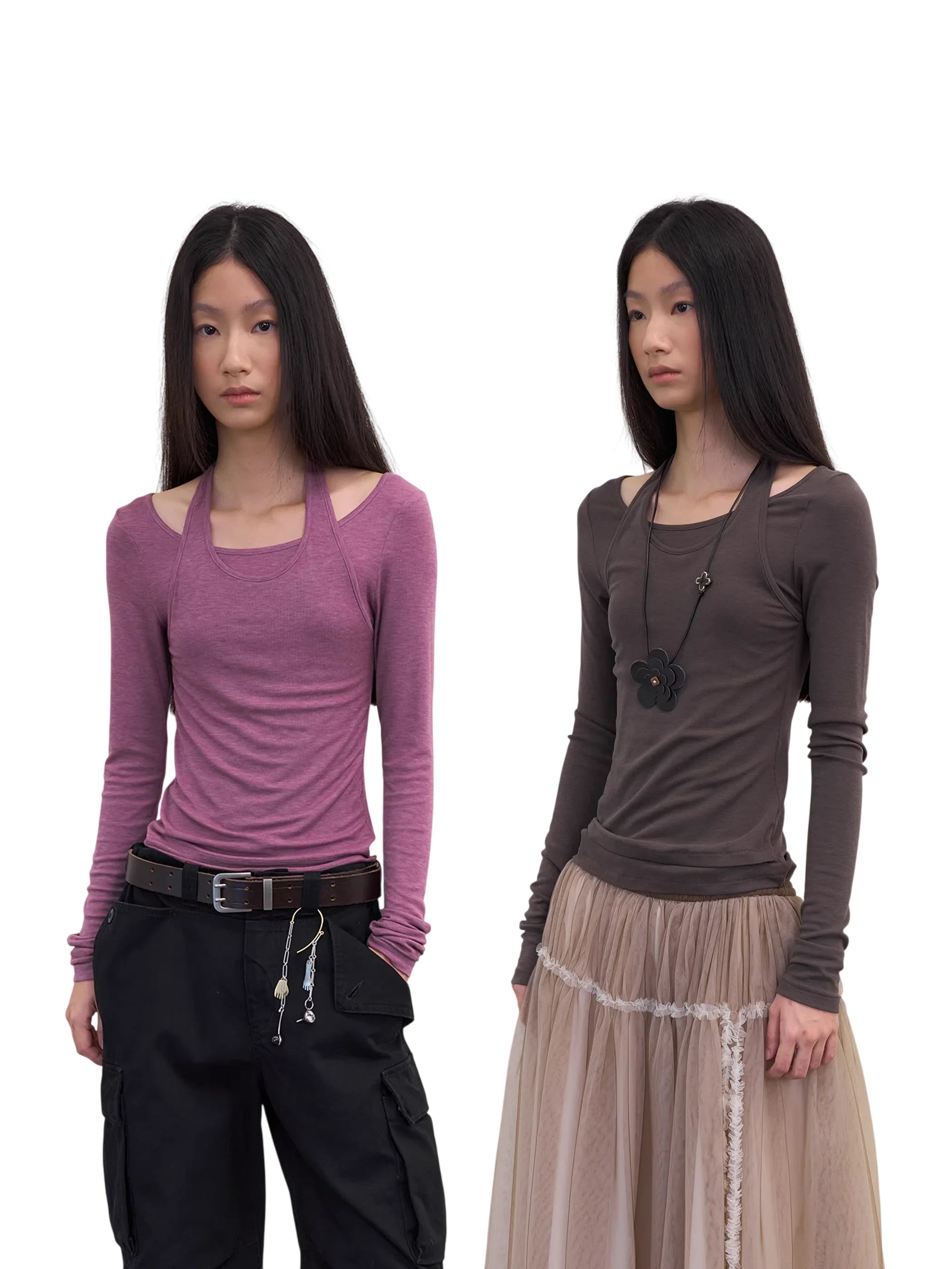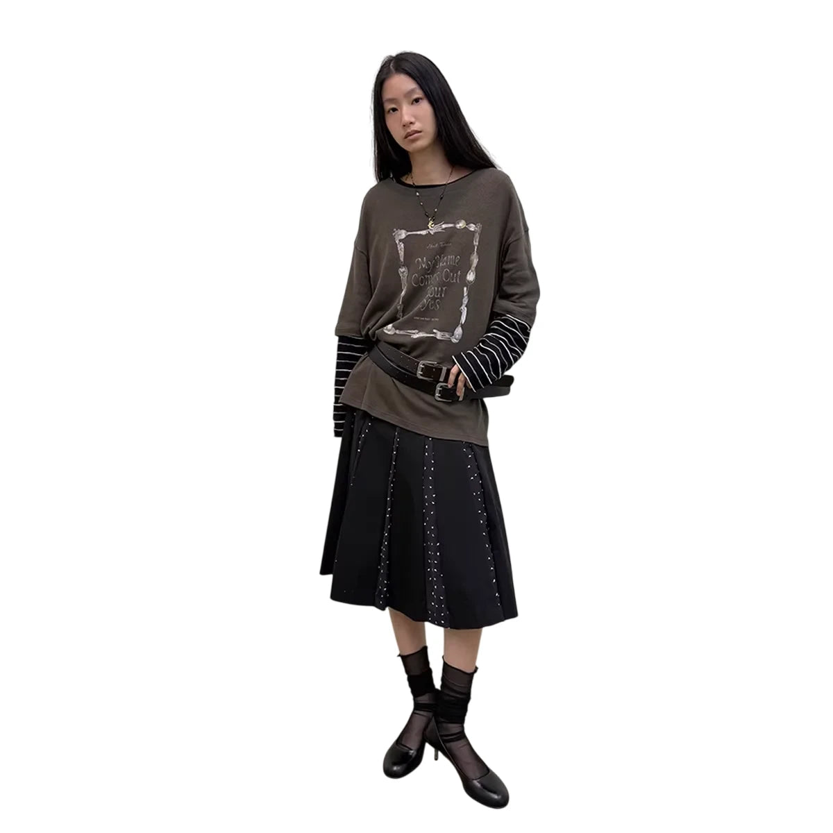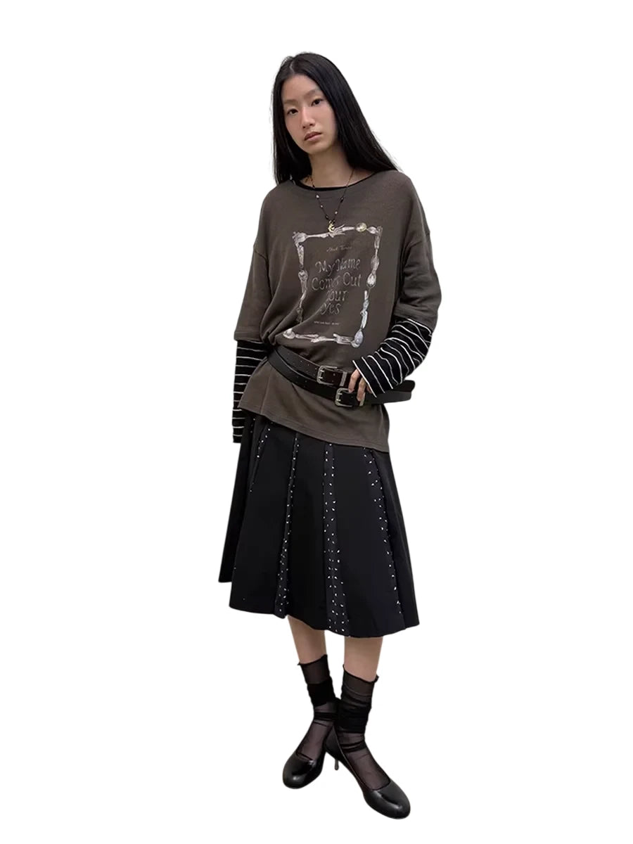 RandomPiece Merino Wool Striped Patchwork Layered Long Sleeve Top