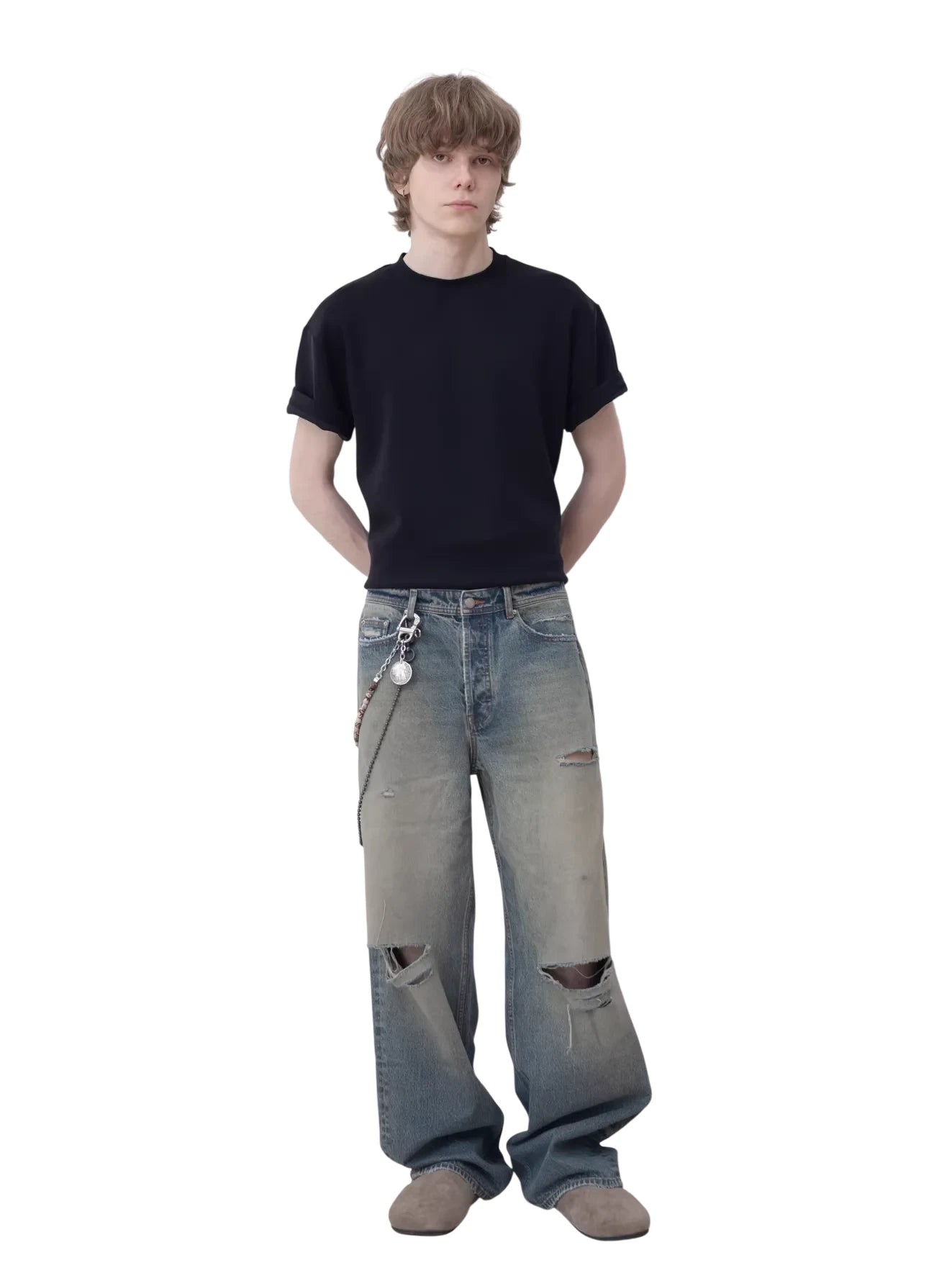 RandomPiece Merino Wool Slim Fit Short Sleeve T-Shirt with U-Neck