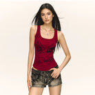 This women's retro-style racerback tank top features a slim, form-fitting silhouette with a scoop neckline for a flattering look. Designed with bold graphic details, including an outlined bra print and the word "Aniseism" on the front, it adds an edgy touch to casual summer outfits. Perfect for layering or wearing solo, this sleeveless camisole pairs well with jeans, shorts, or skirts. Ideal for those seeking a stylish and expressive summer staple.