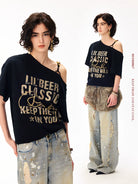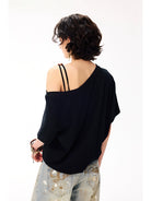 Available in classic black and sizes S to L, it's perfect for casual outings or lounging at home. The unique slash neckline adds a trendy twist, making it a must-have piece for your wardrobe.