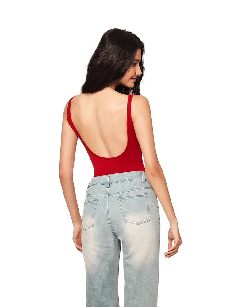 Elevate your style with this retro-inspired, backless bodysuit tank top designed for women. Featuring a slimming, fitted silhouette and a low-cut open back tied delicately at the nape, this sleeveless piece adds a bold and feminine touch to any outfit. Ideal for casual outings or nightlife ensembles, it pairs effortlessly with skirts or jeans for a chic and trendy look.