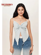 BeerBro Women's Backless Floral Twist Strap Tank Top with Ruched Front