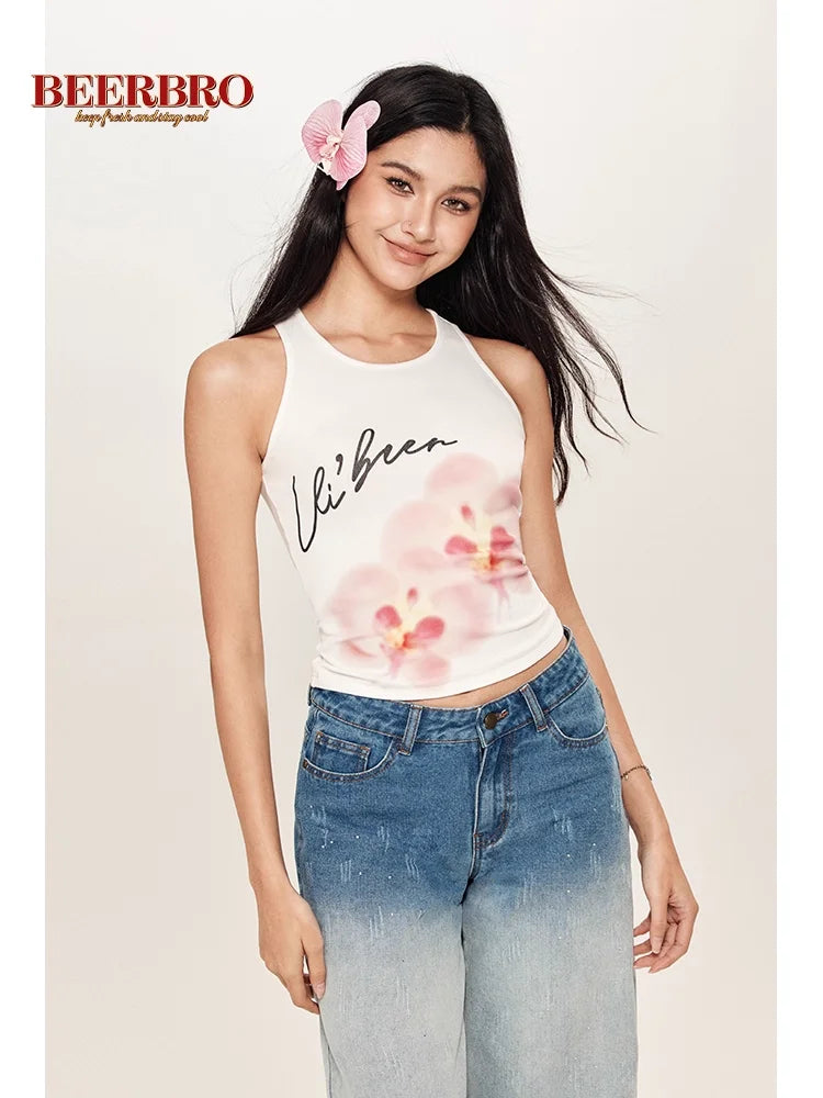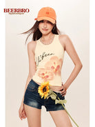 BeerBro Women's Slim Fit Floral Print Sleeveless Crop Tank Top