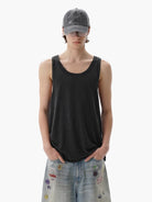 This vintage-inspired racerback tank top features a soft, lightweight fabric with a relaxed fit, perfect for casual wear. The faded black tone adds a classic touch, while its breathable design makes it ideal for layering or standalone styling. Modeled by a male, it delivers effortless streetwear flair when paired with denim and accessories.