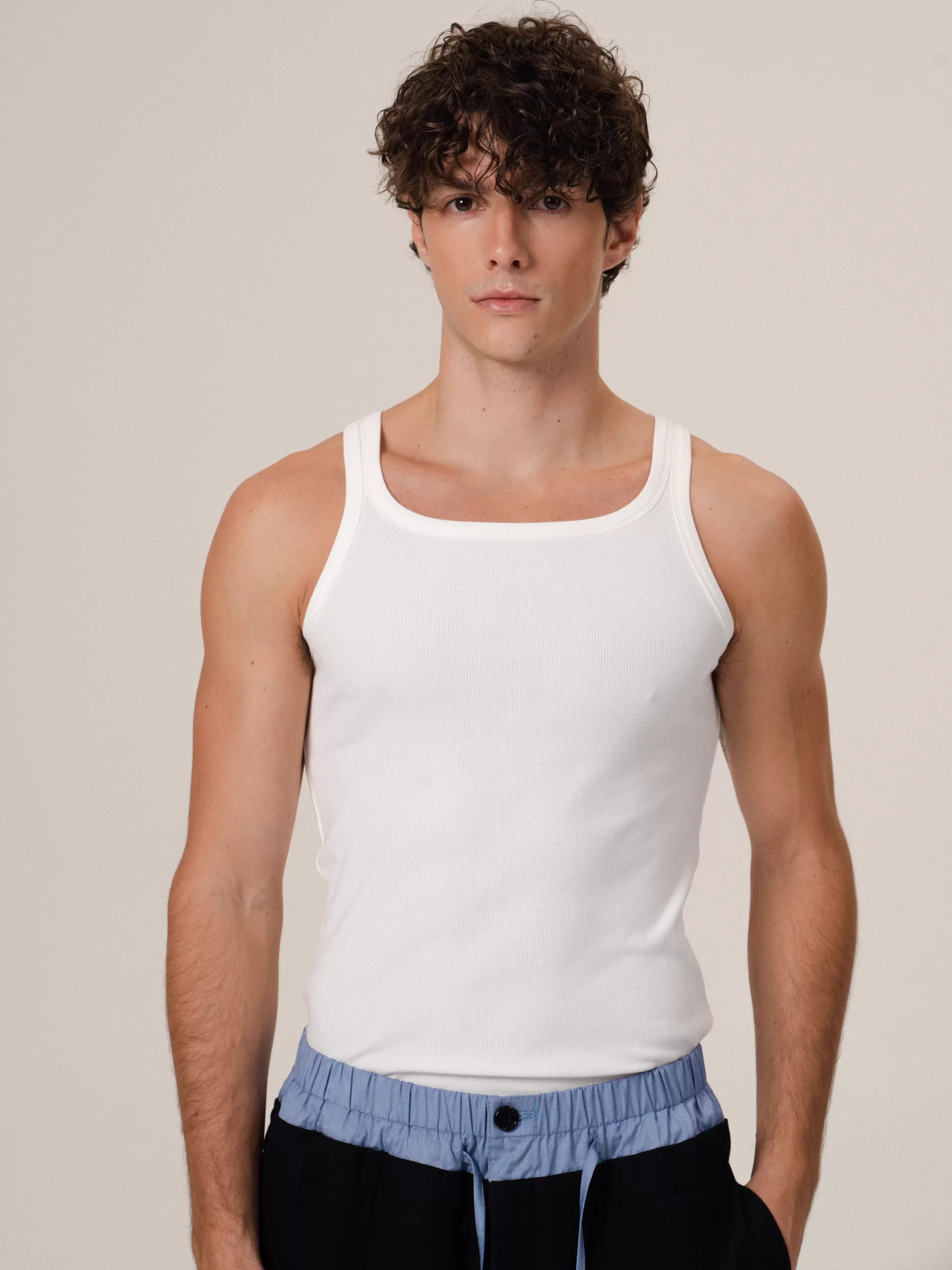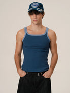 Retro 21 Slim Fit Ribbed Tank Top with Contrast Trim