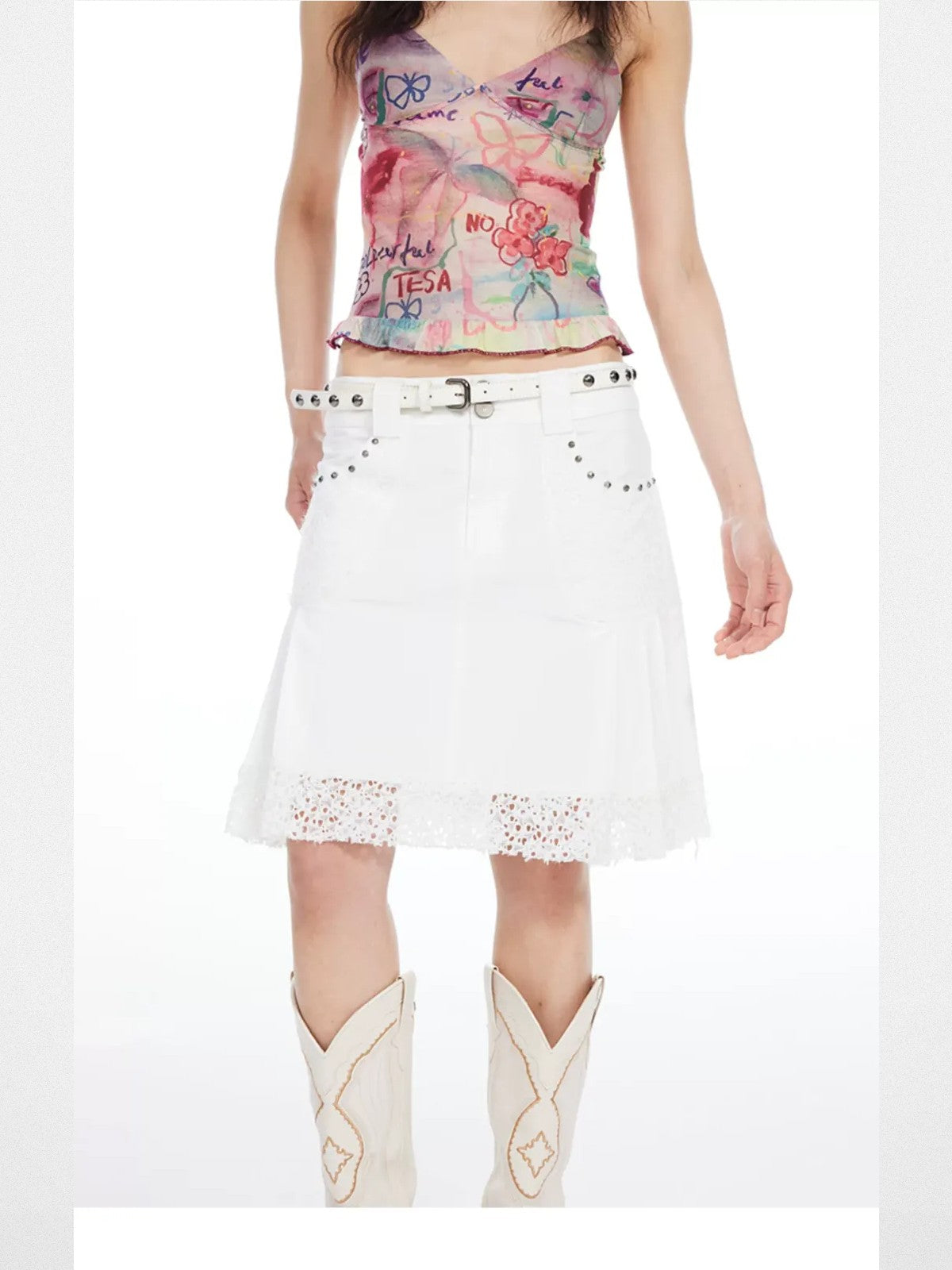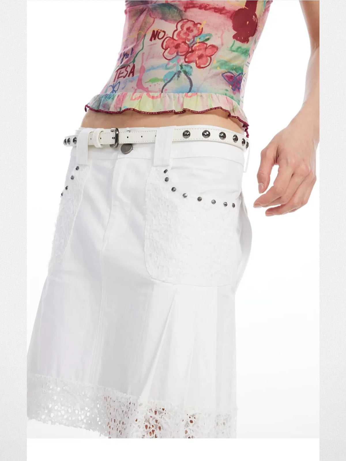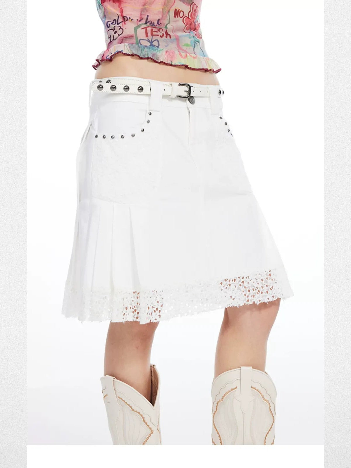 Beaded Lace Pleated Mini Skirt