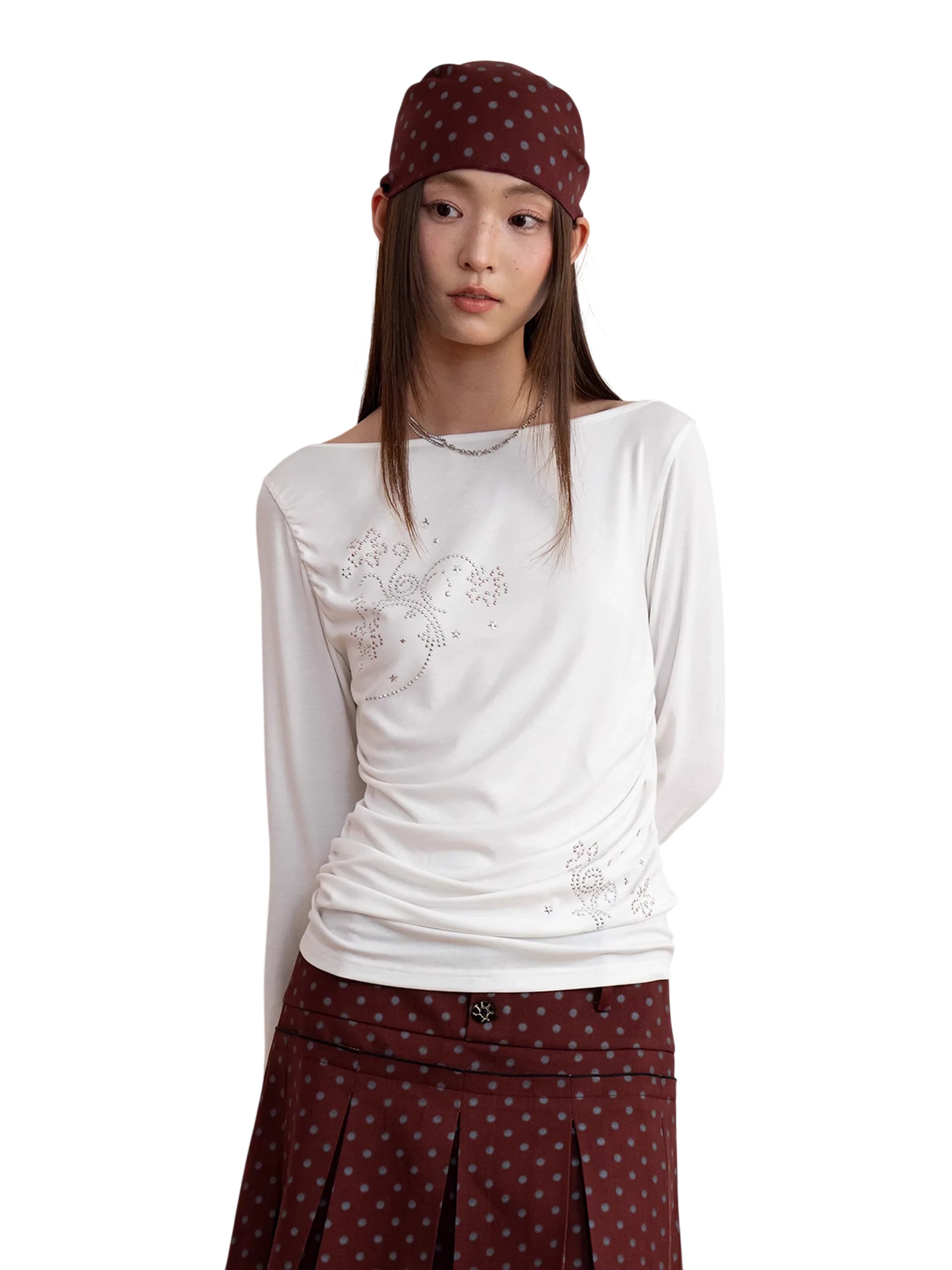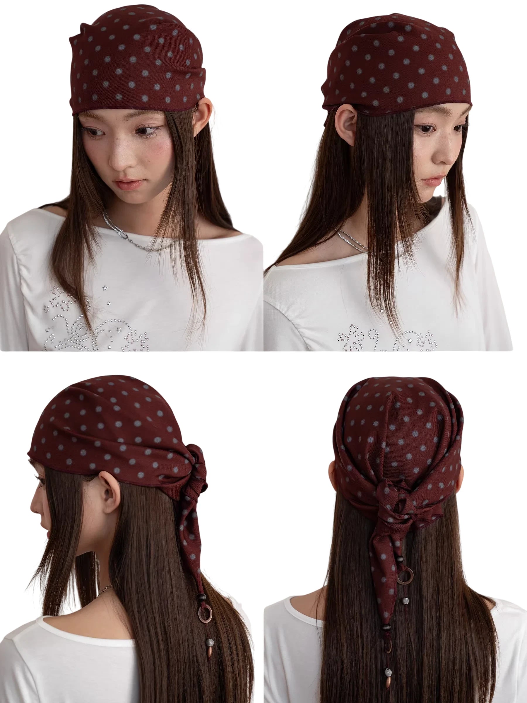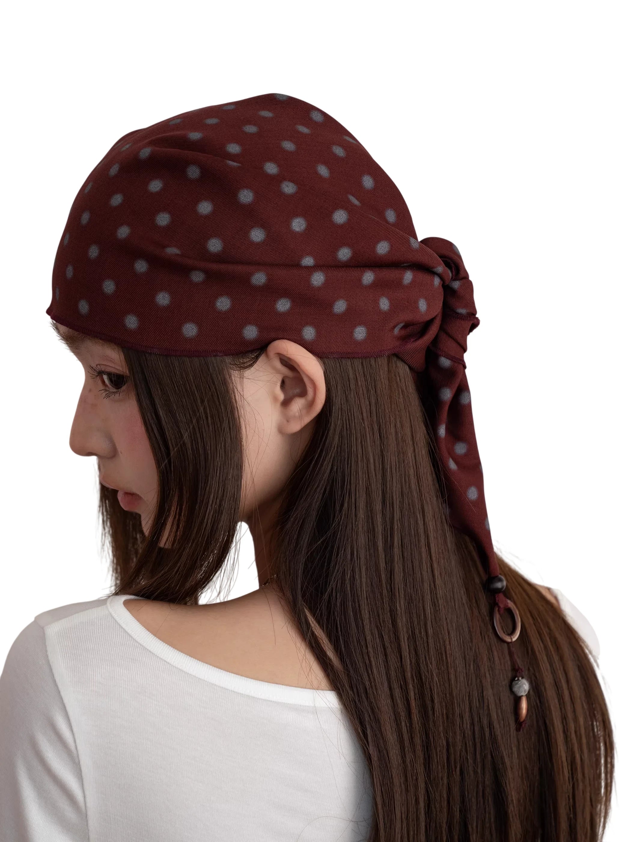 THELIGHT OFFICIAL Dark Red Polka Dot Triangle Headscarf with Pendant Detail