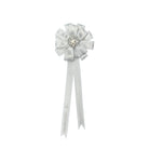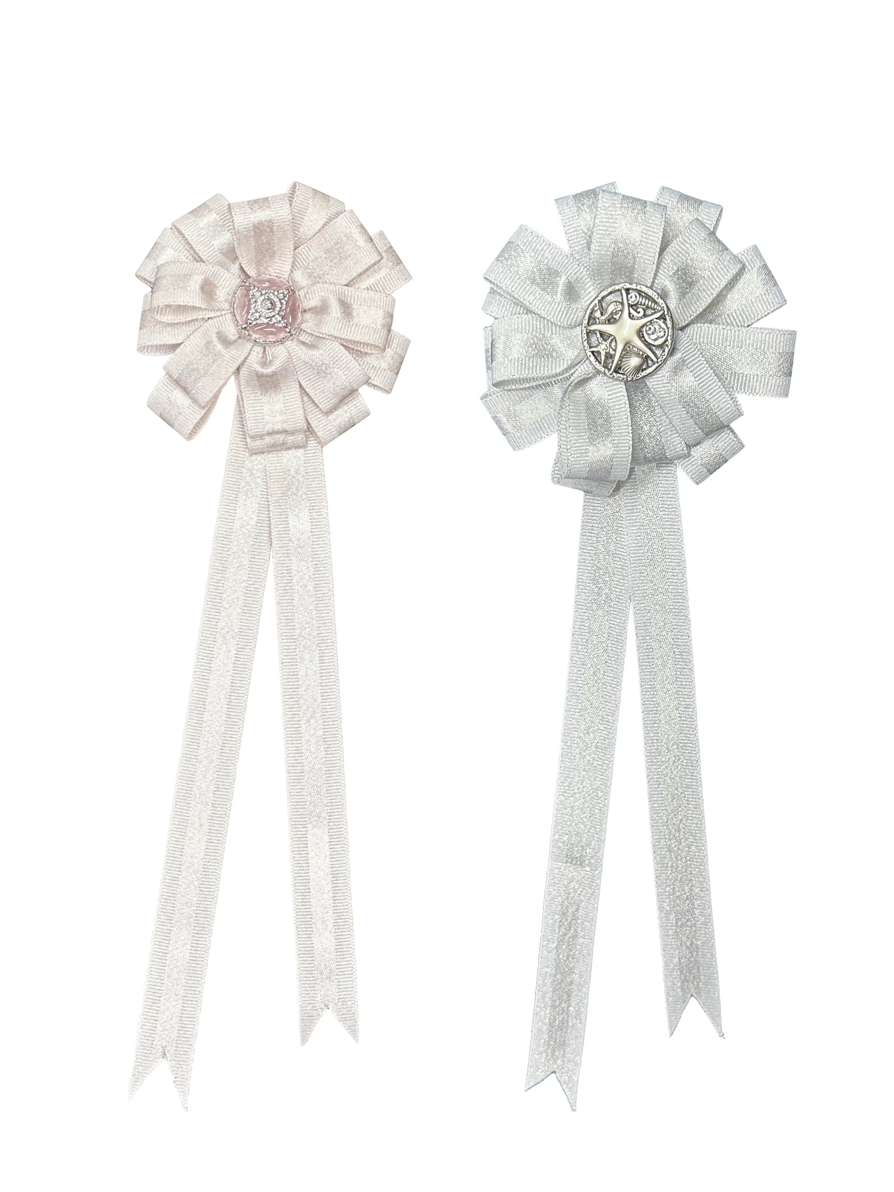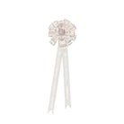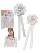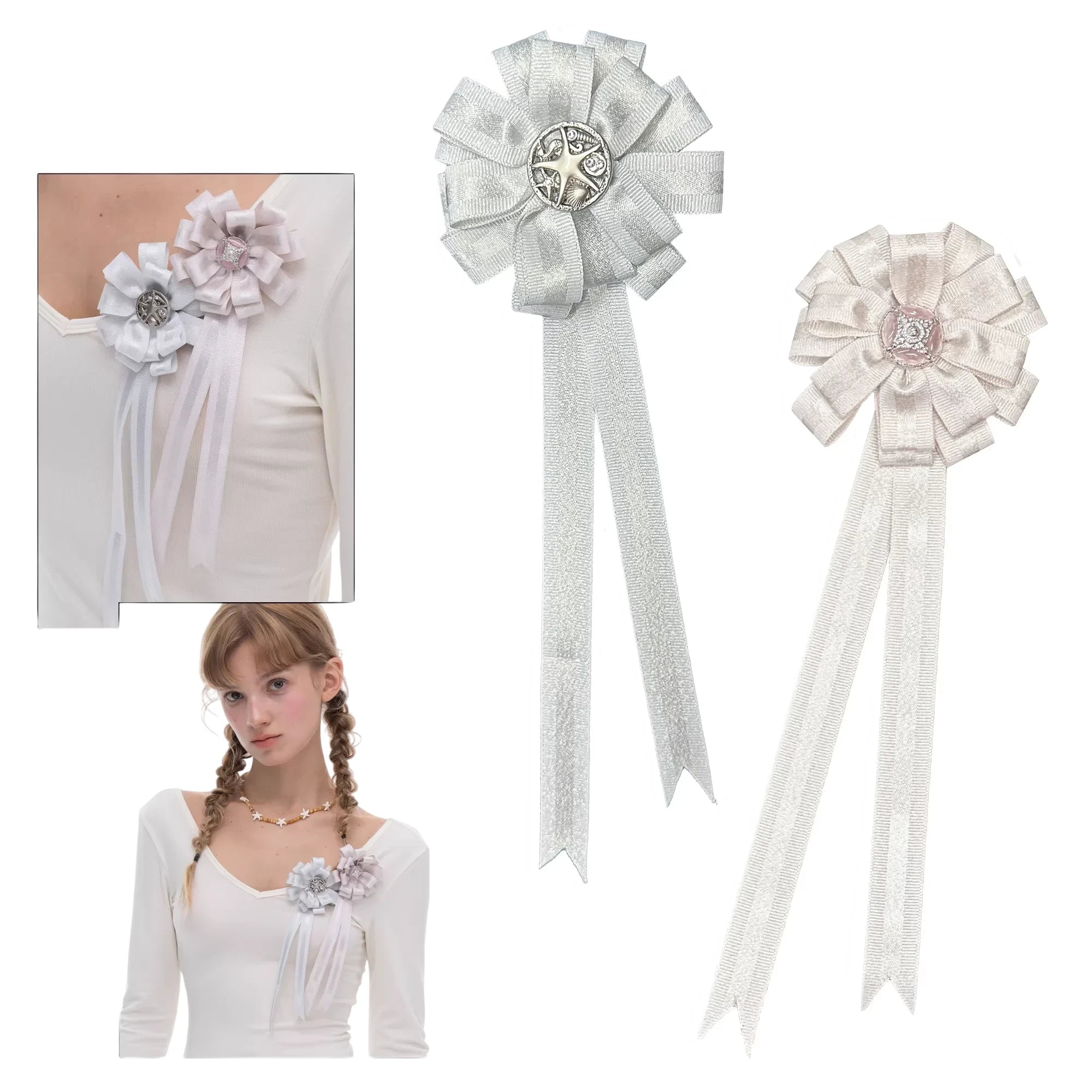 Add a touch of elegant flair with this handmade floral badge brooch set. Each brooch features soft, layered ribbon petals in delicate pink and gray tones, styled with long flowing tails for visual impact.