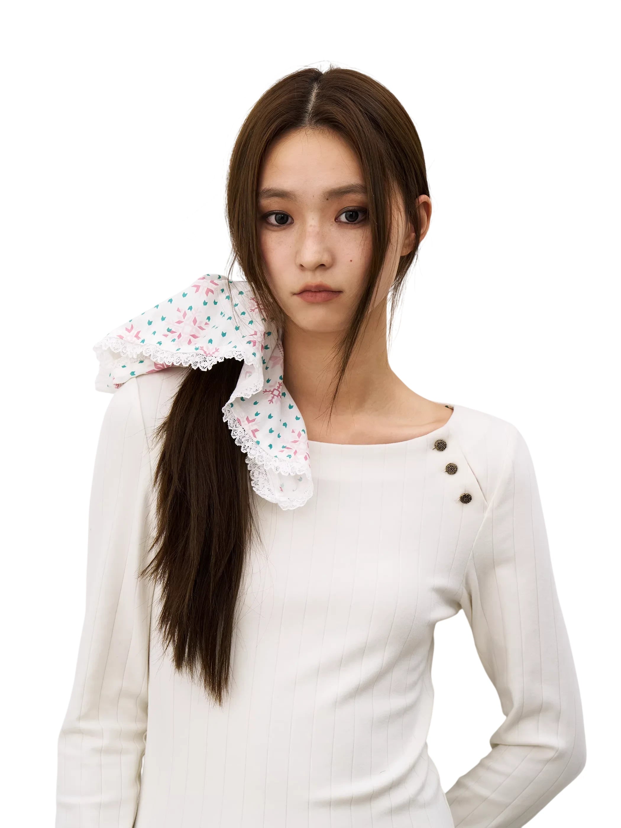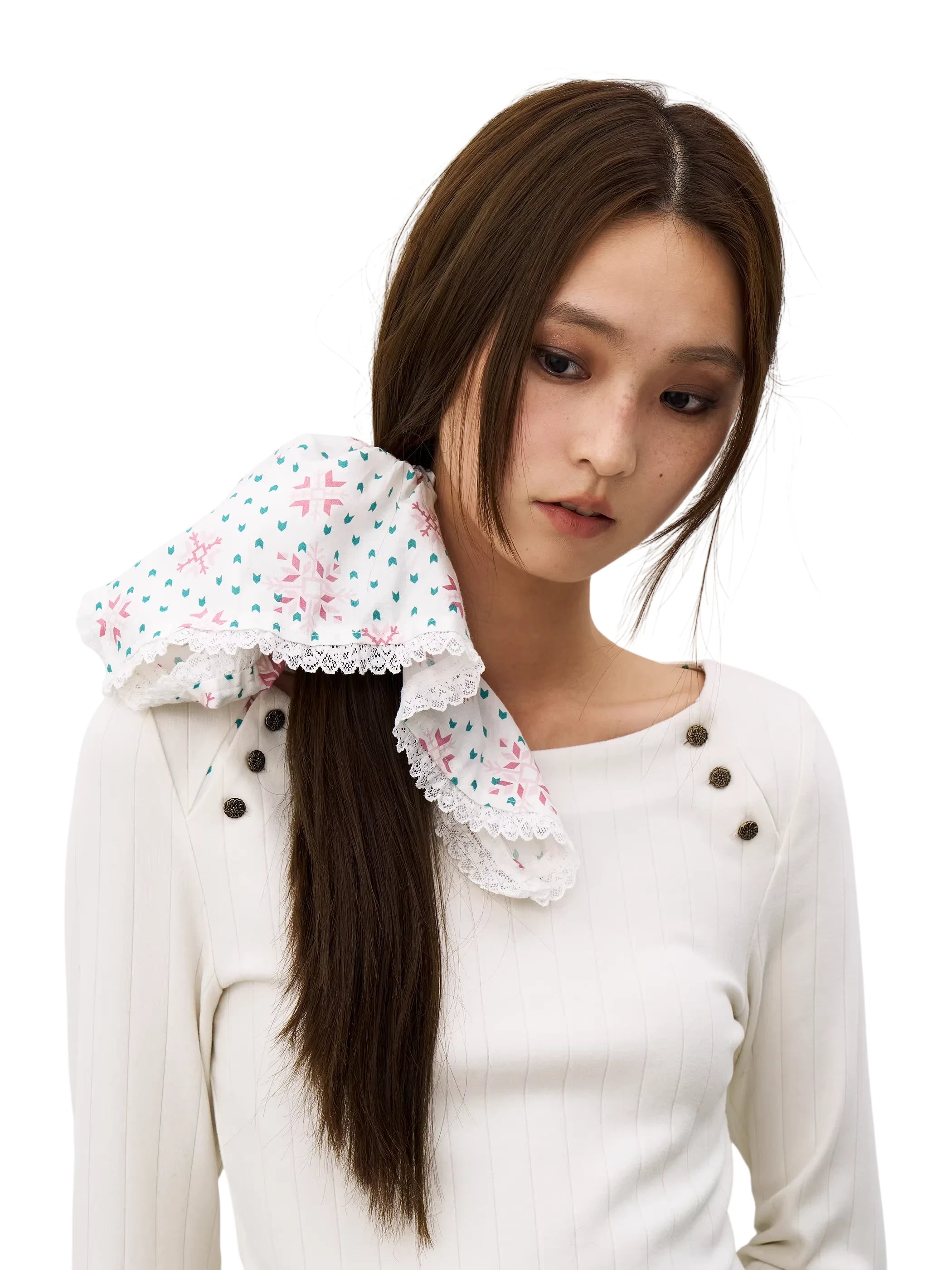 THELIGHT OFFICIAL Lace Trim Floral Elastic Scarf Scrunchie