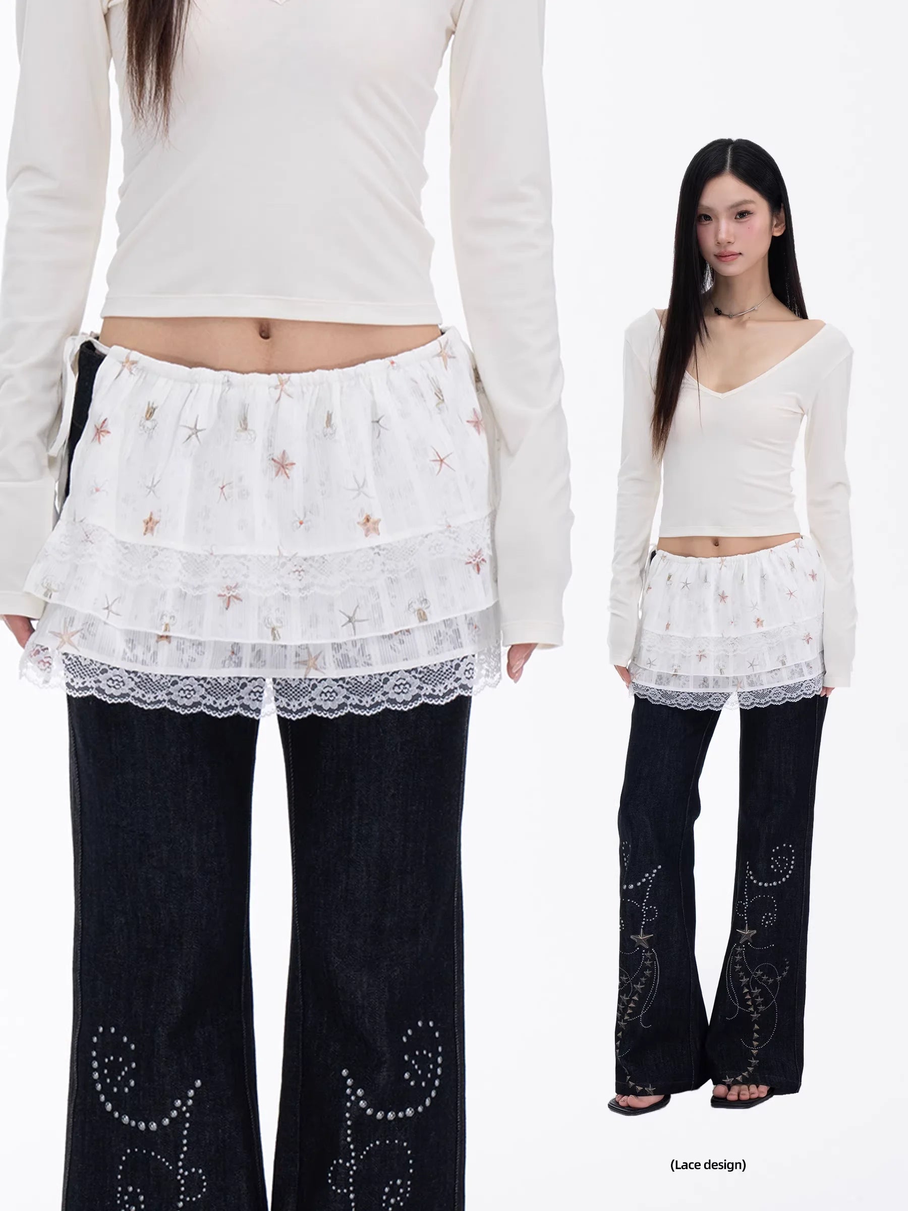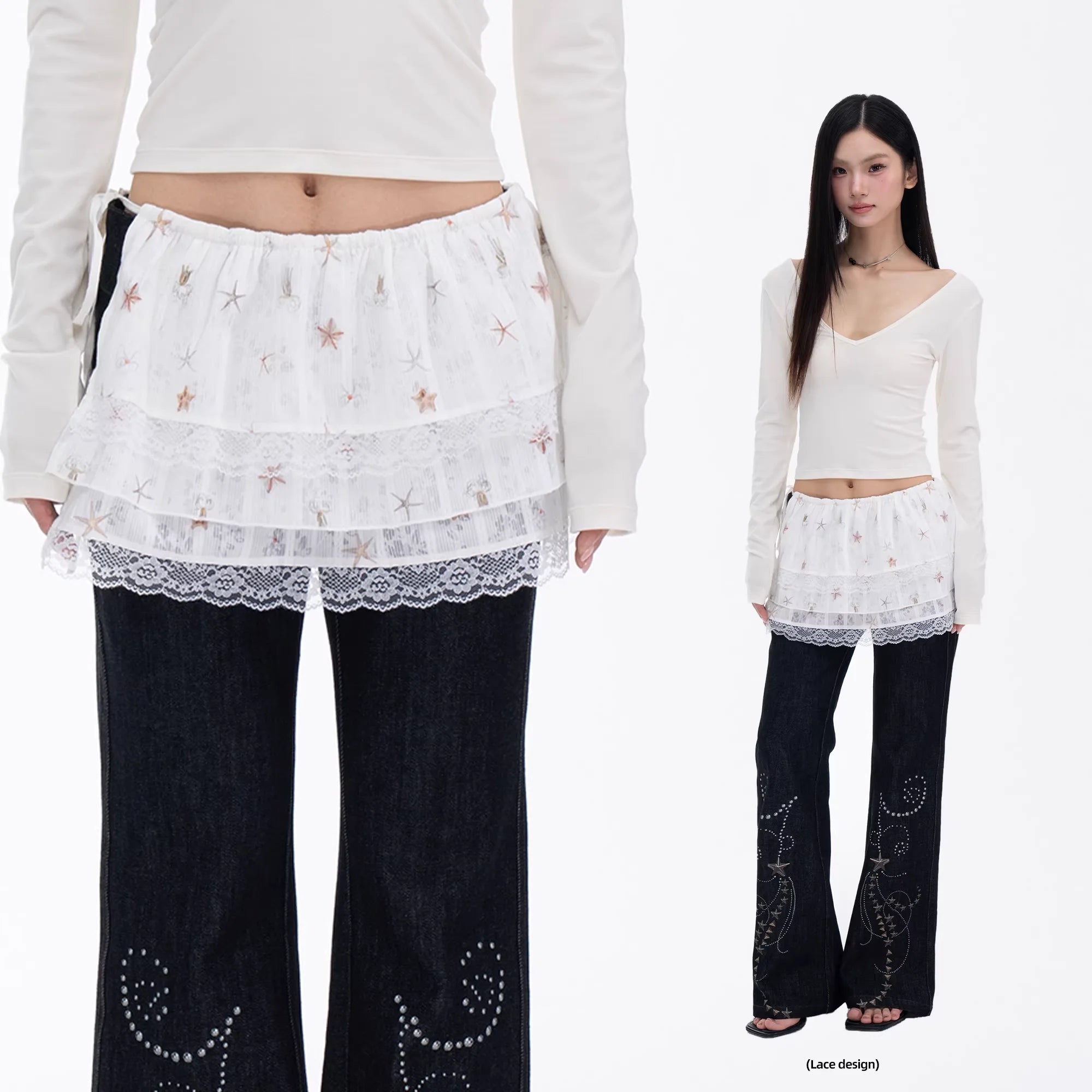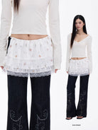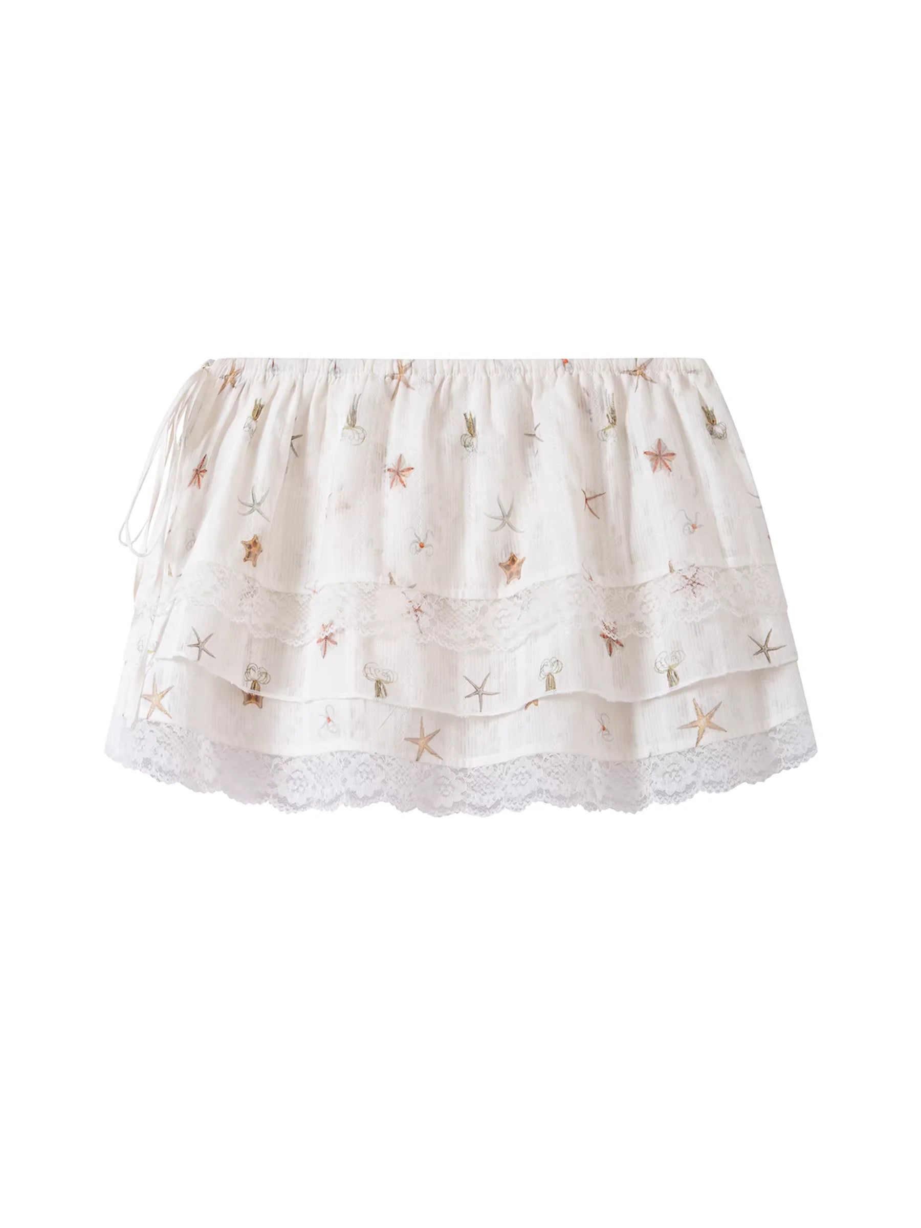 THELIGHT OFFICIAL Retro Layered Lace Mini Skirt with Starfish Embroidery