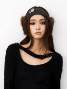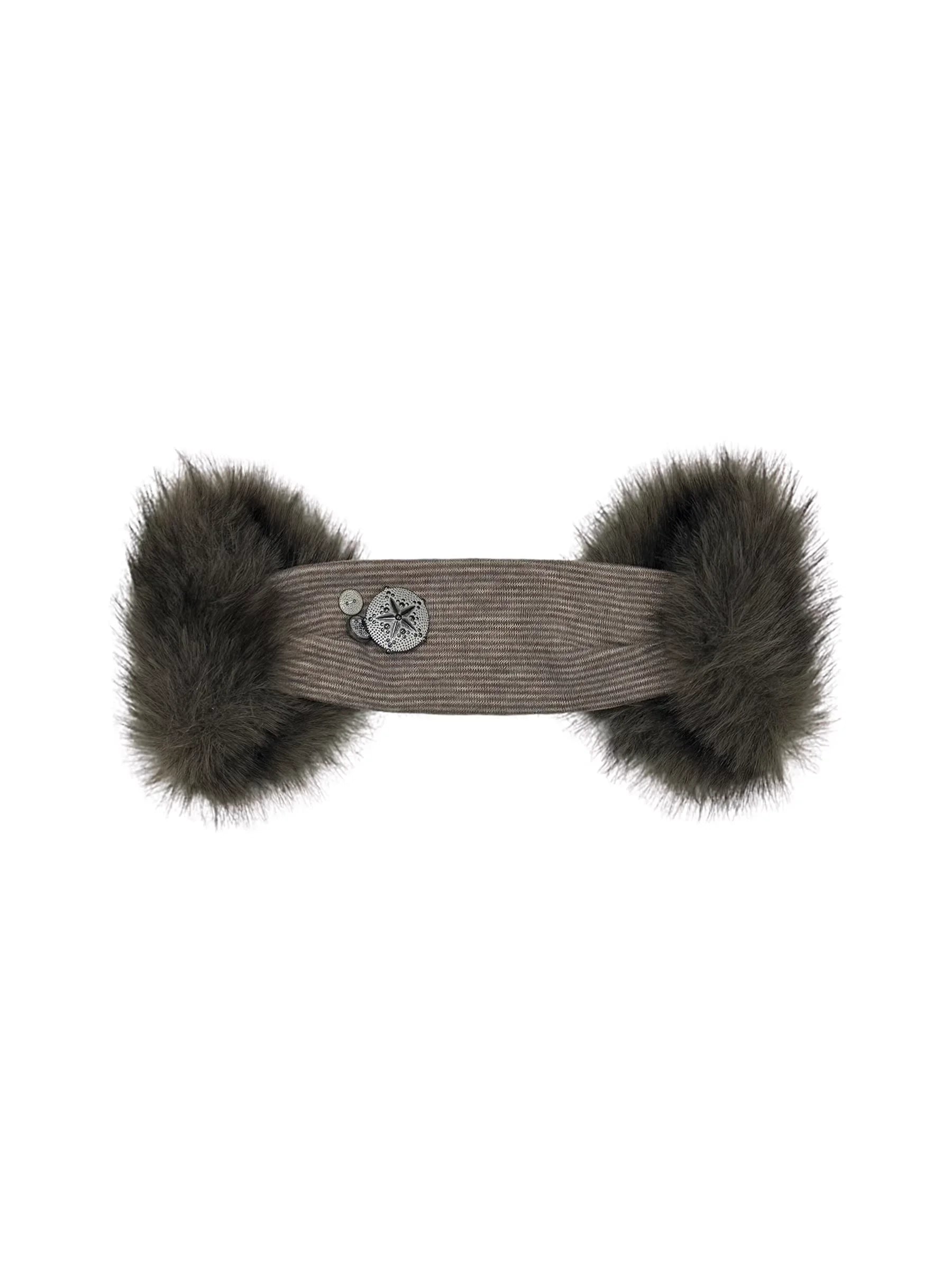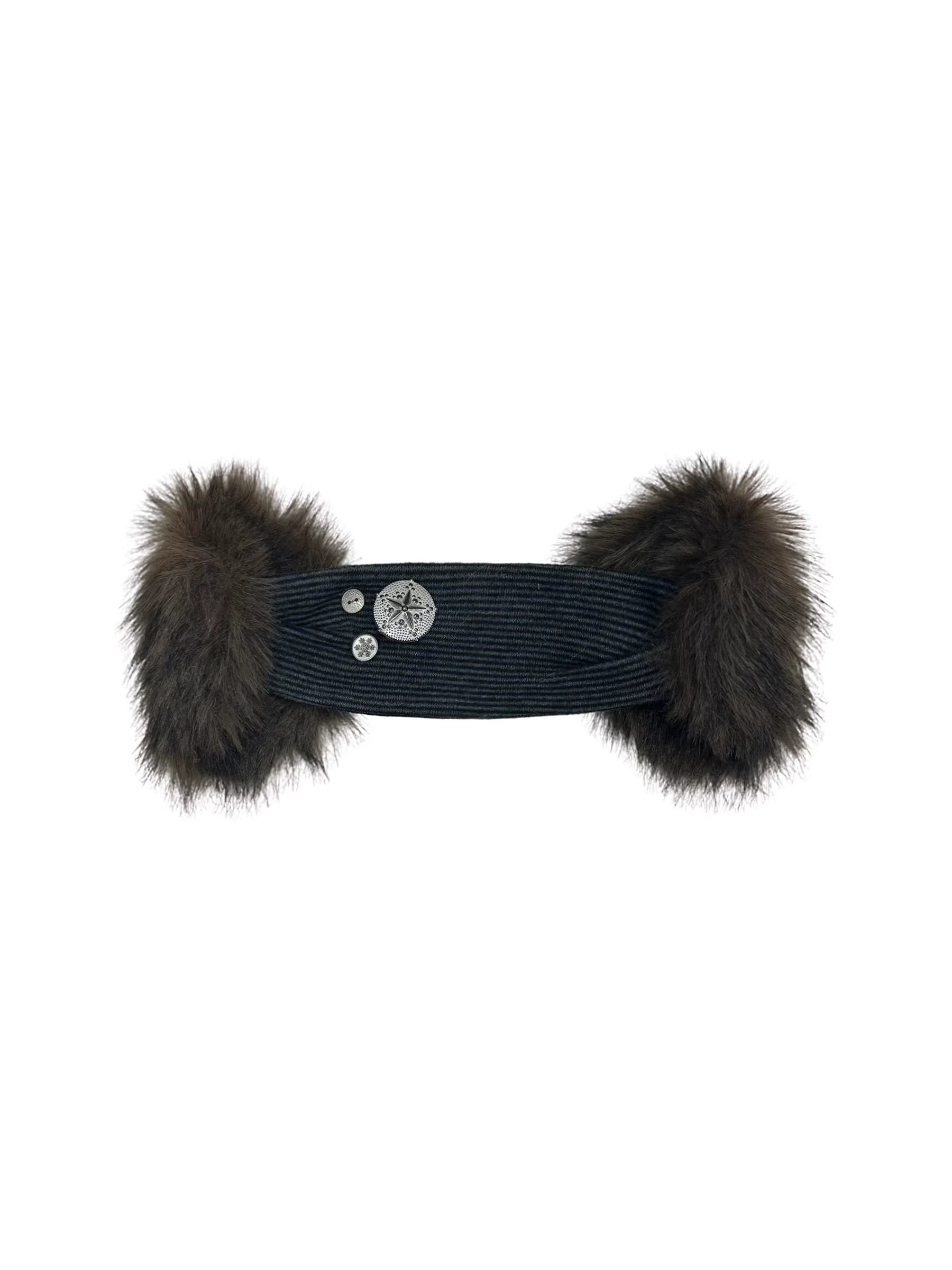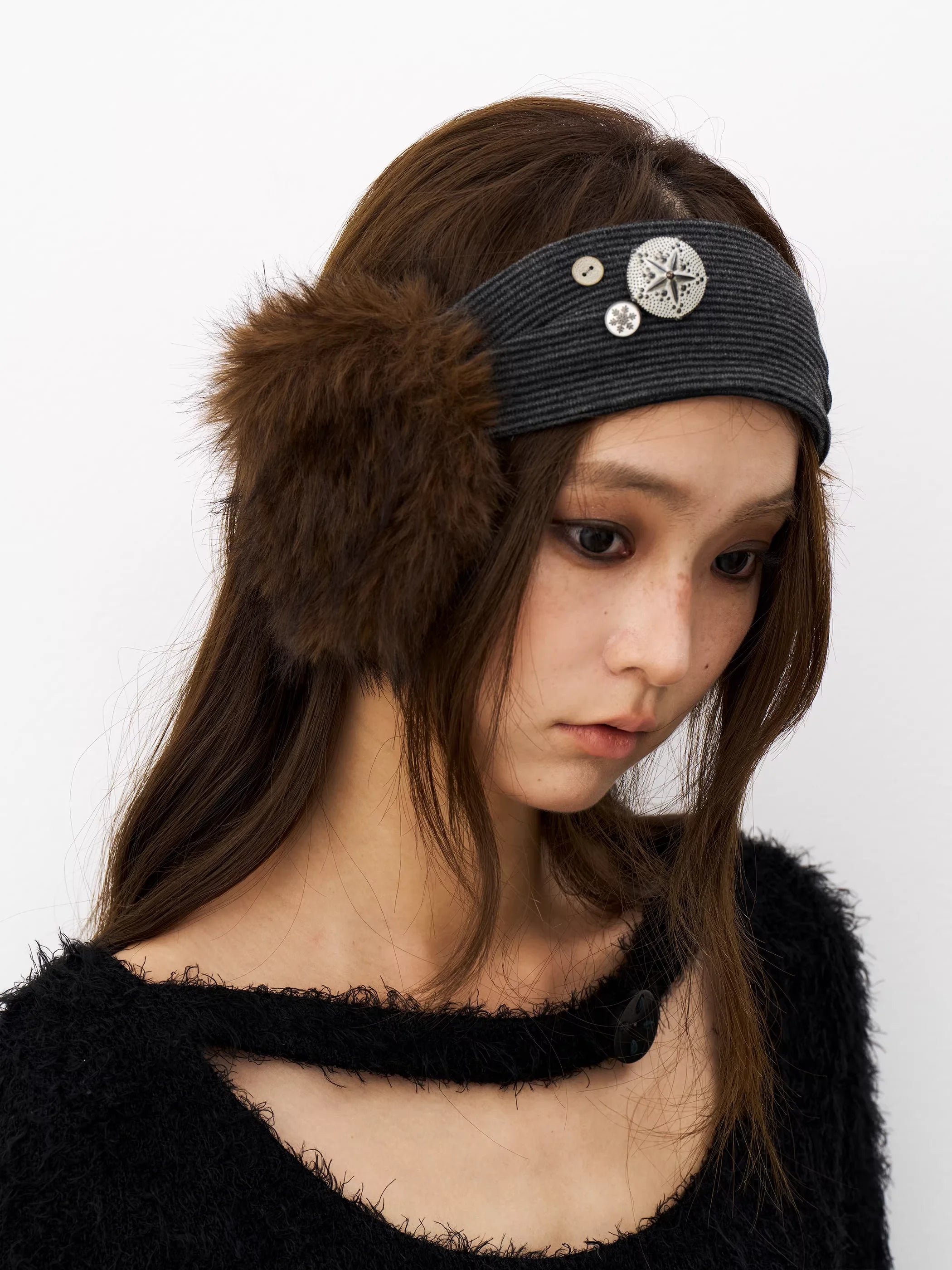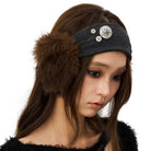 Stay warm in style with this retro-inspired headband and earmuff combo, perfect for autumn and winter travel. This women's accessory features a ribbed dark grey or black headband accented with three unique metallic buttons, including a compass star design that adds a touch of vintage charm. The thick brown faux fur earmuffs provide cozy warmth and luxurious texture, making this headwear both functional and fashionable.