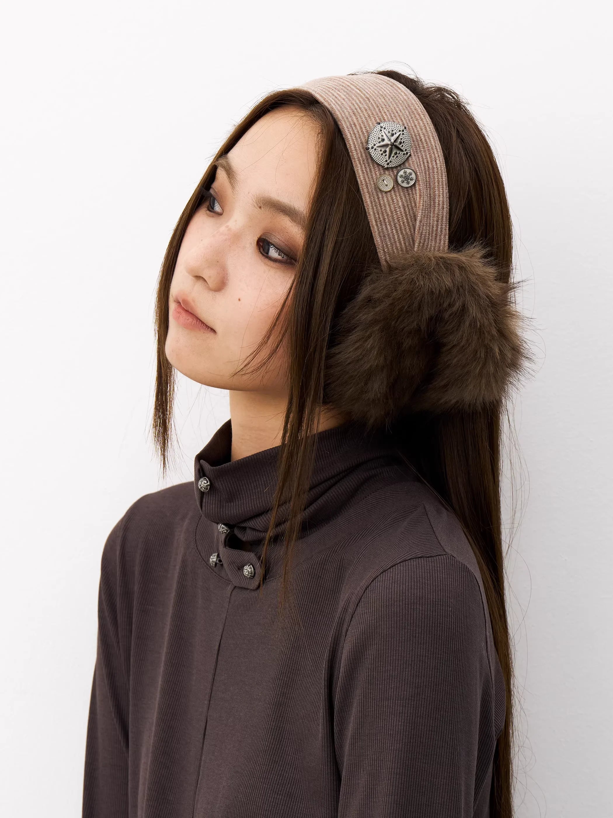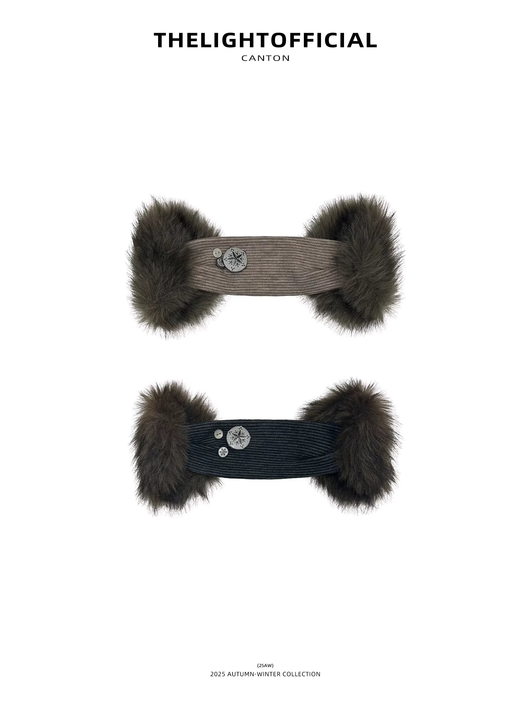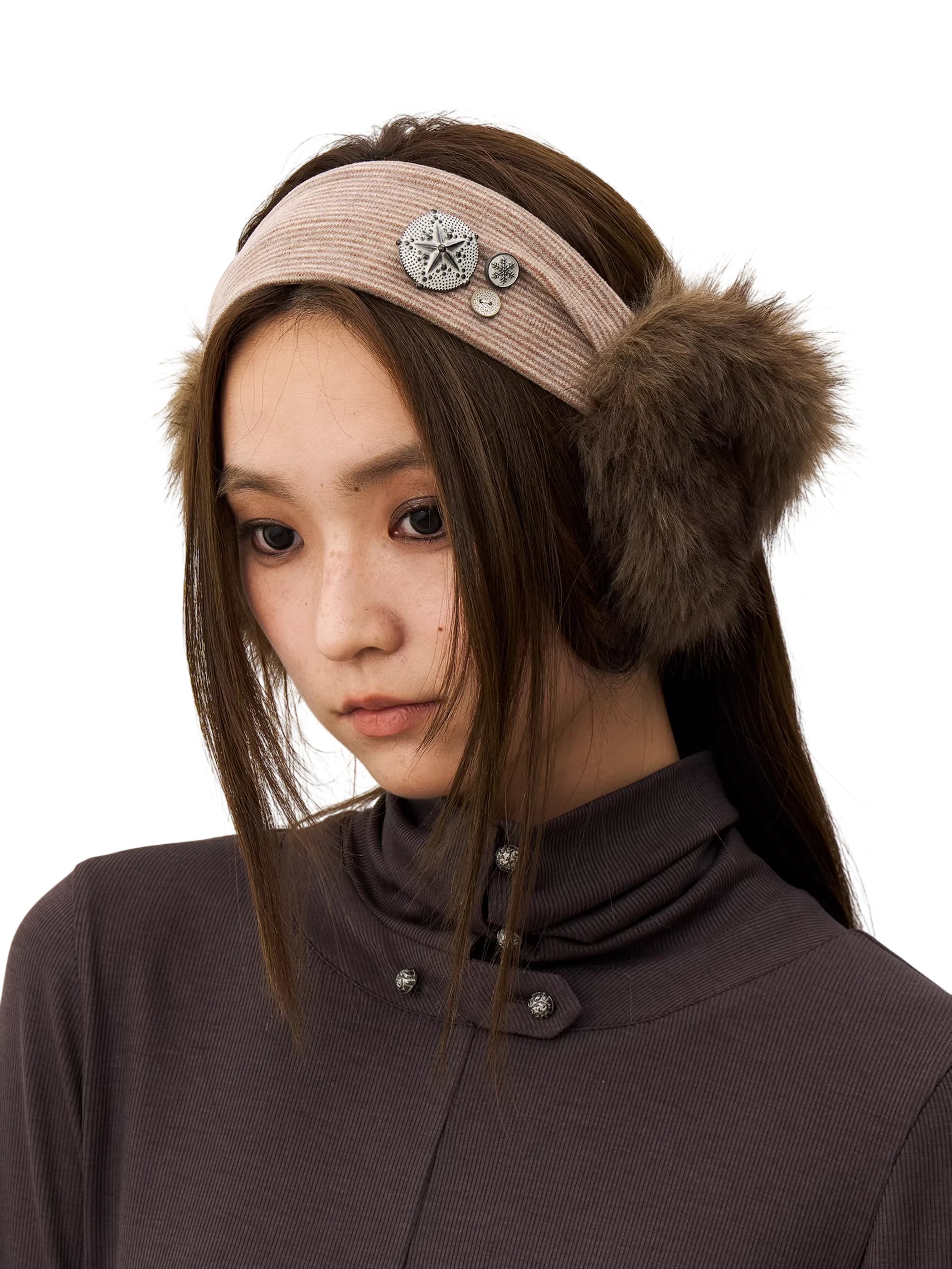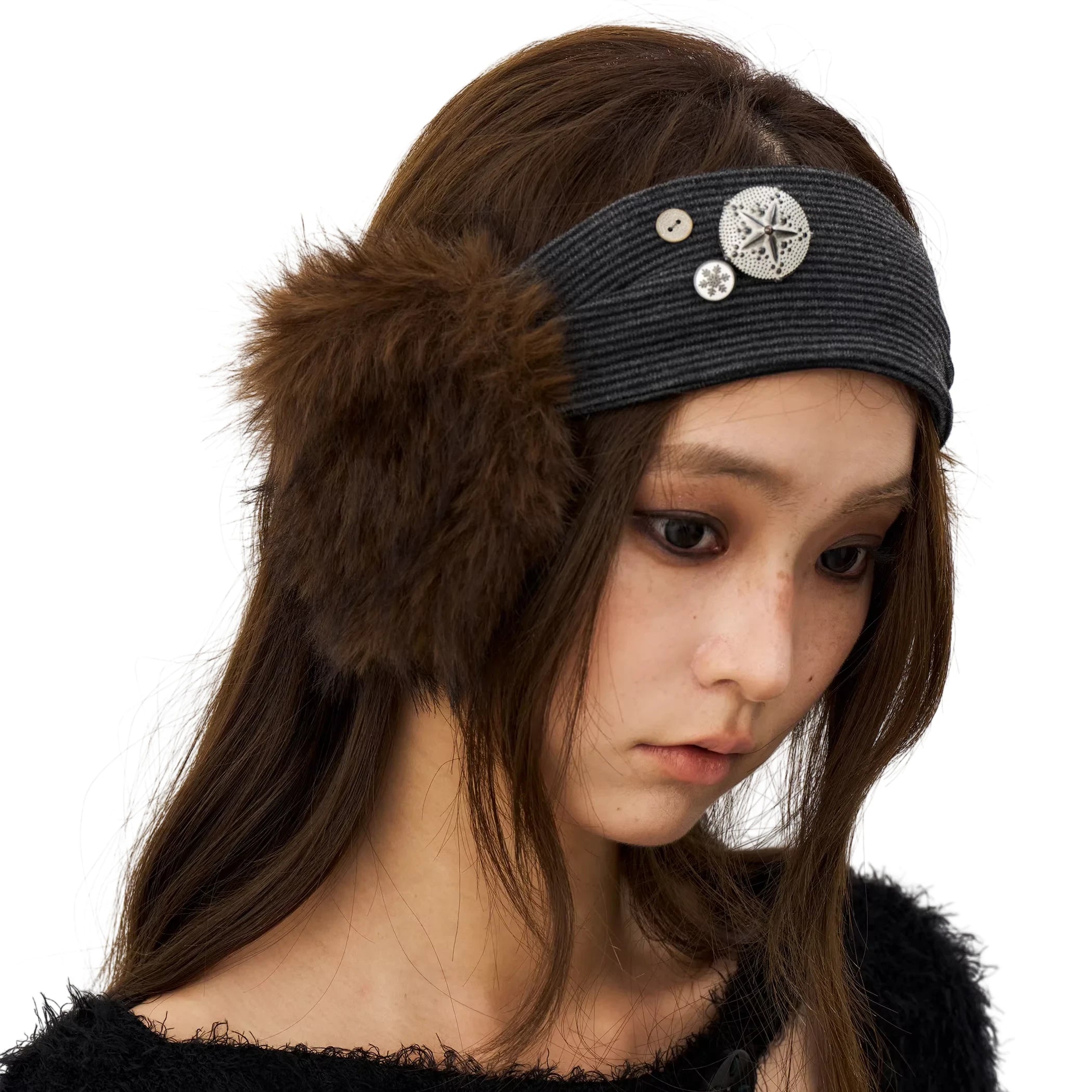 THELIGHT OFFICIAL Retro Plush Headband with Earmuffs and Decorative Buttons