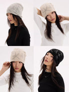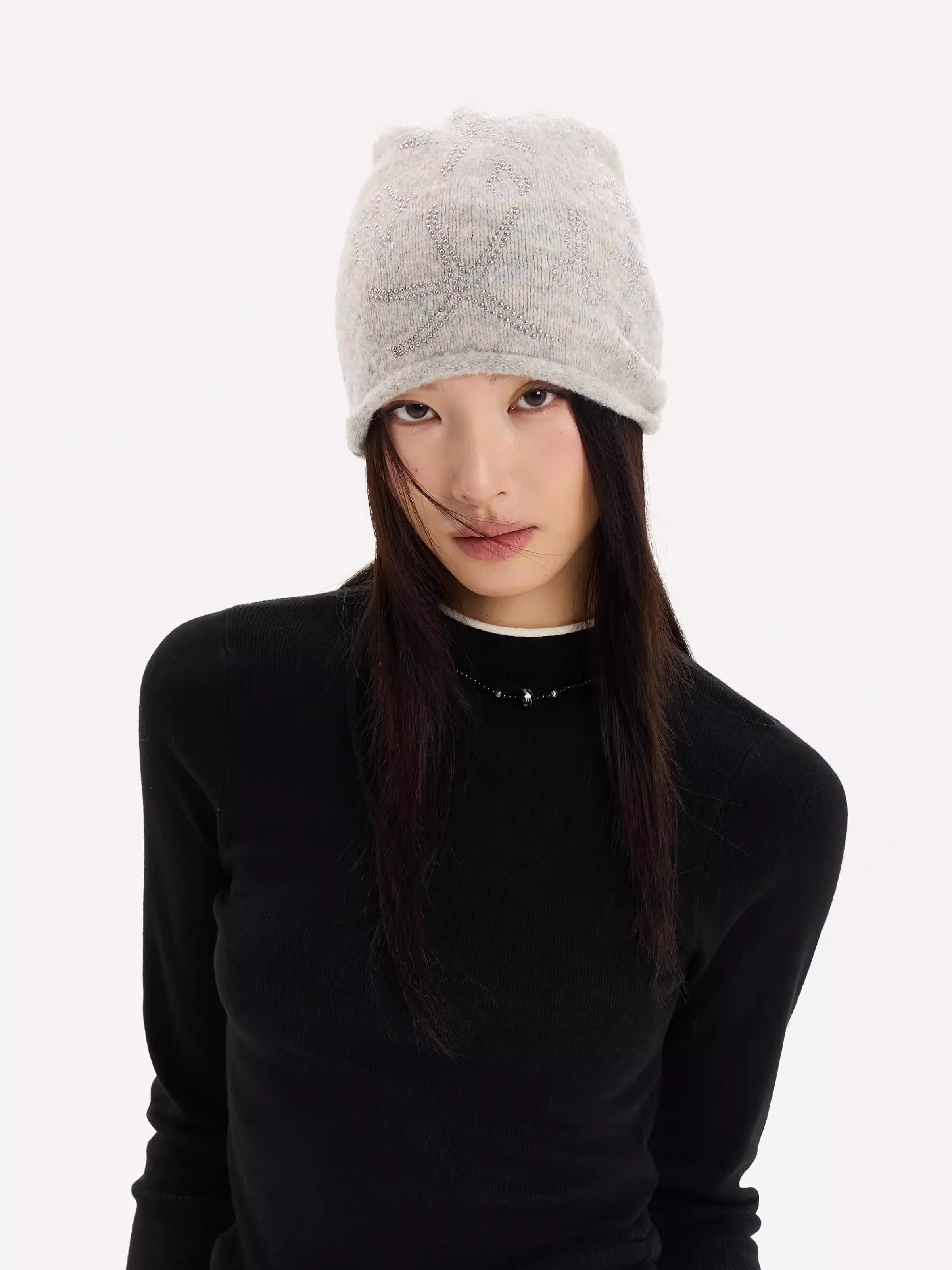Stay stylish and warm during the cooler months with this vintage-inspired wool beanie. Featuring an eye-catching array of silver rhinestone graphic designs, this hat adds a playful yet bold accent to your autumn and winter wardrobe. The soft wool-like material and rolled brim provide cozy comfort and a classic look. Designed for women, this versatile accessory pairs effortlessly with casual or layered outfits.
