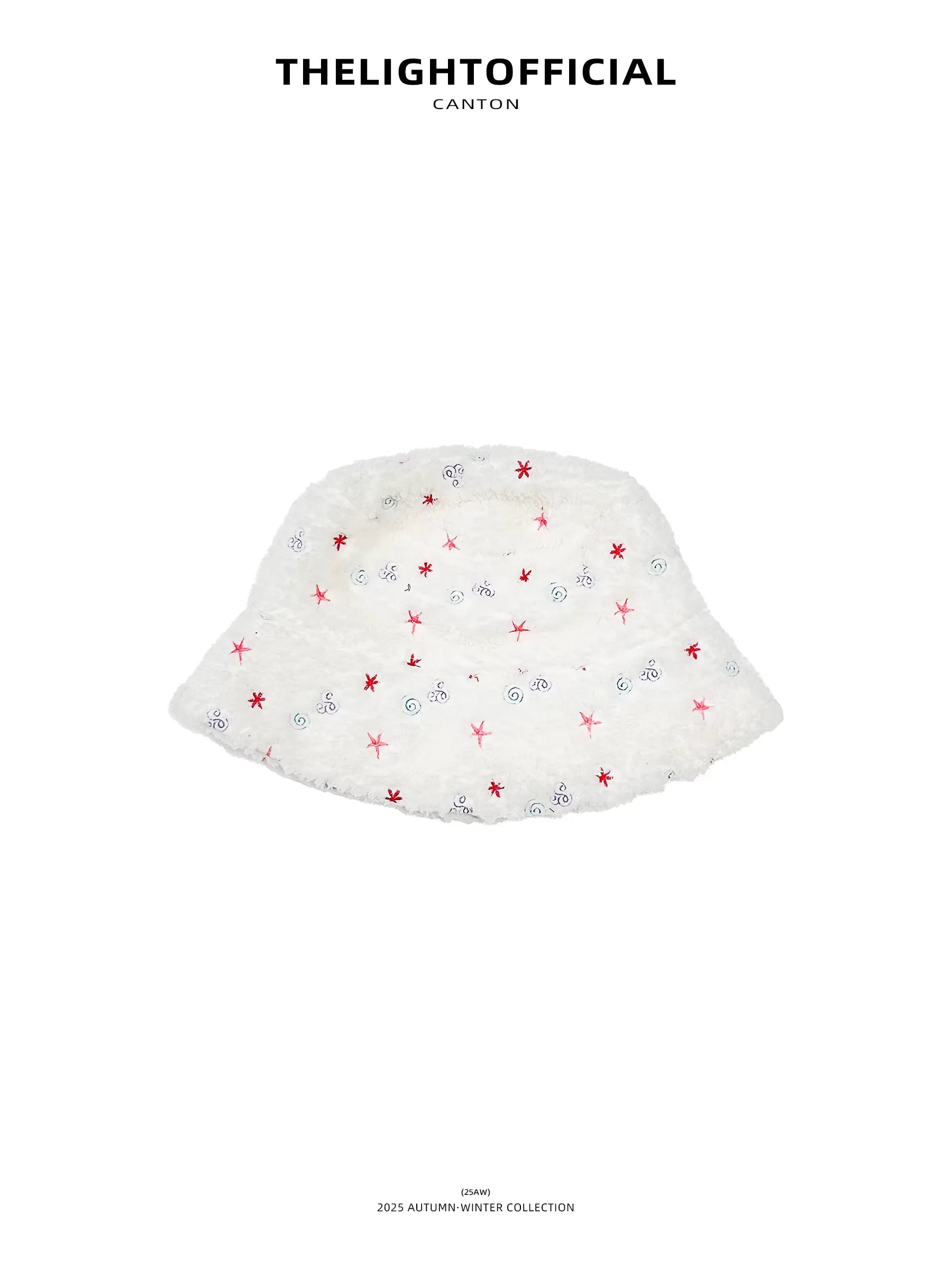 THELIGHT OFFICIAL Women's Fuzzy Embroidered Star Bucket Hat - White