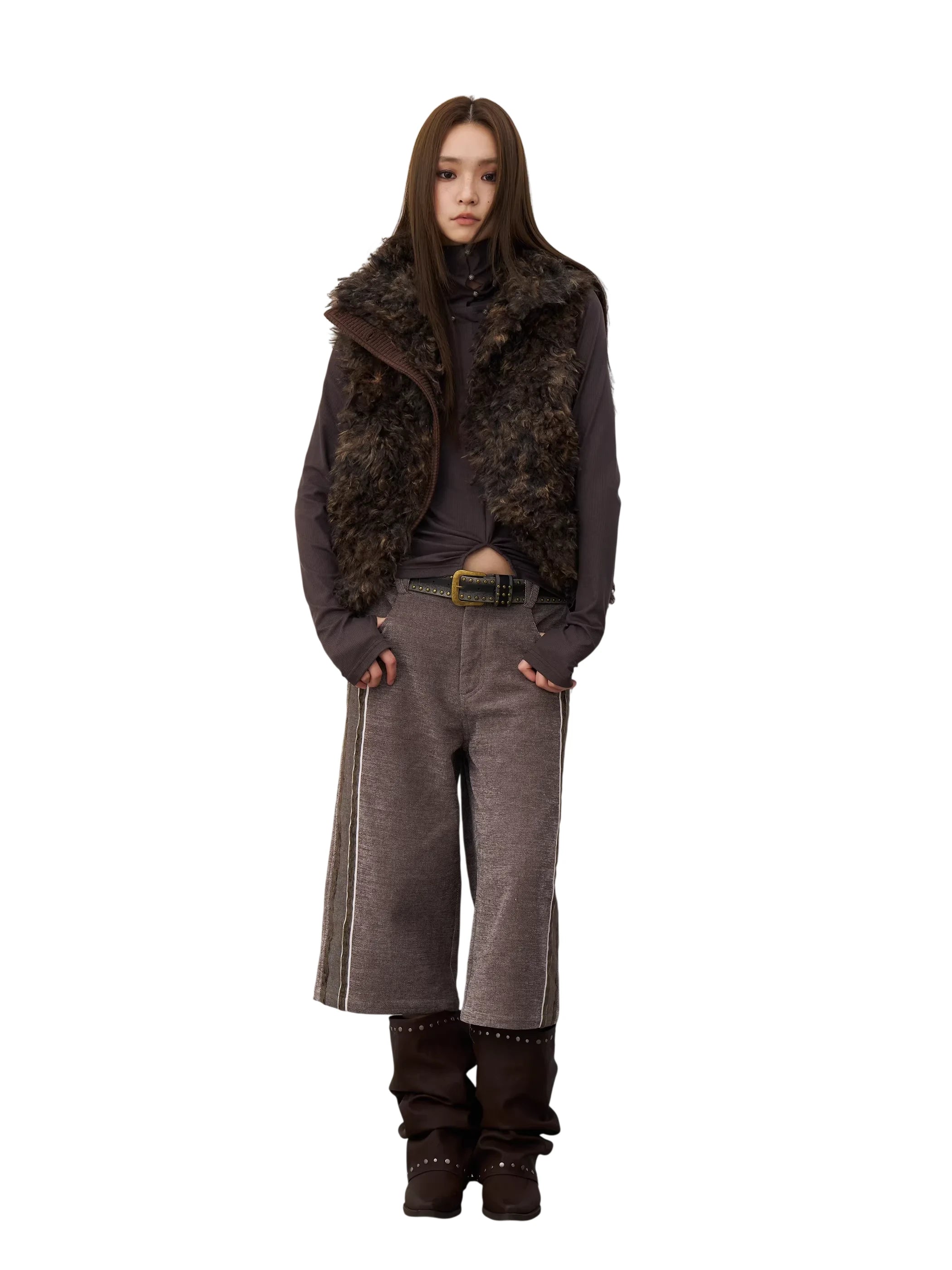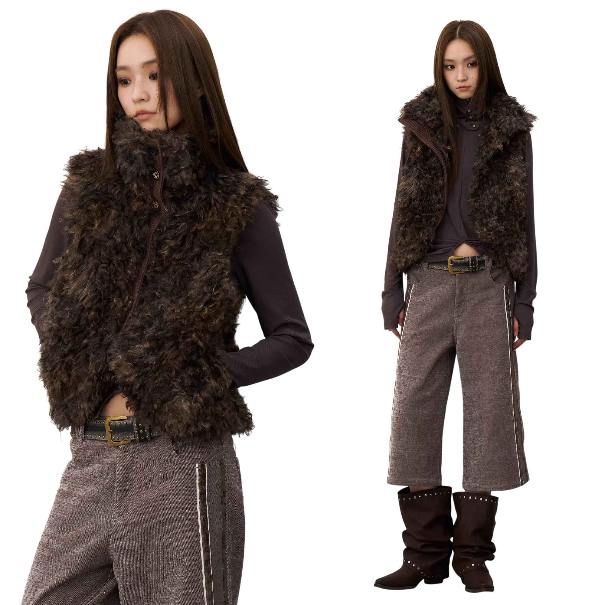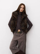 THELIGHT OFFICIAL Women's Winter Faux Shearling Fleece Vest with Knitted Patchwork