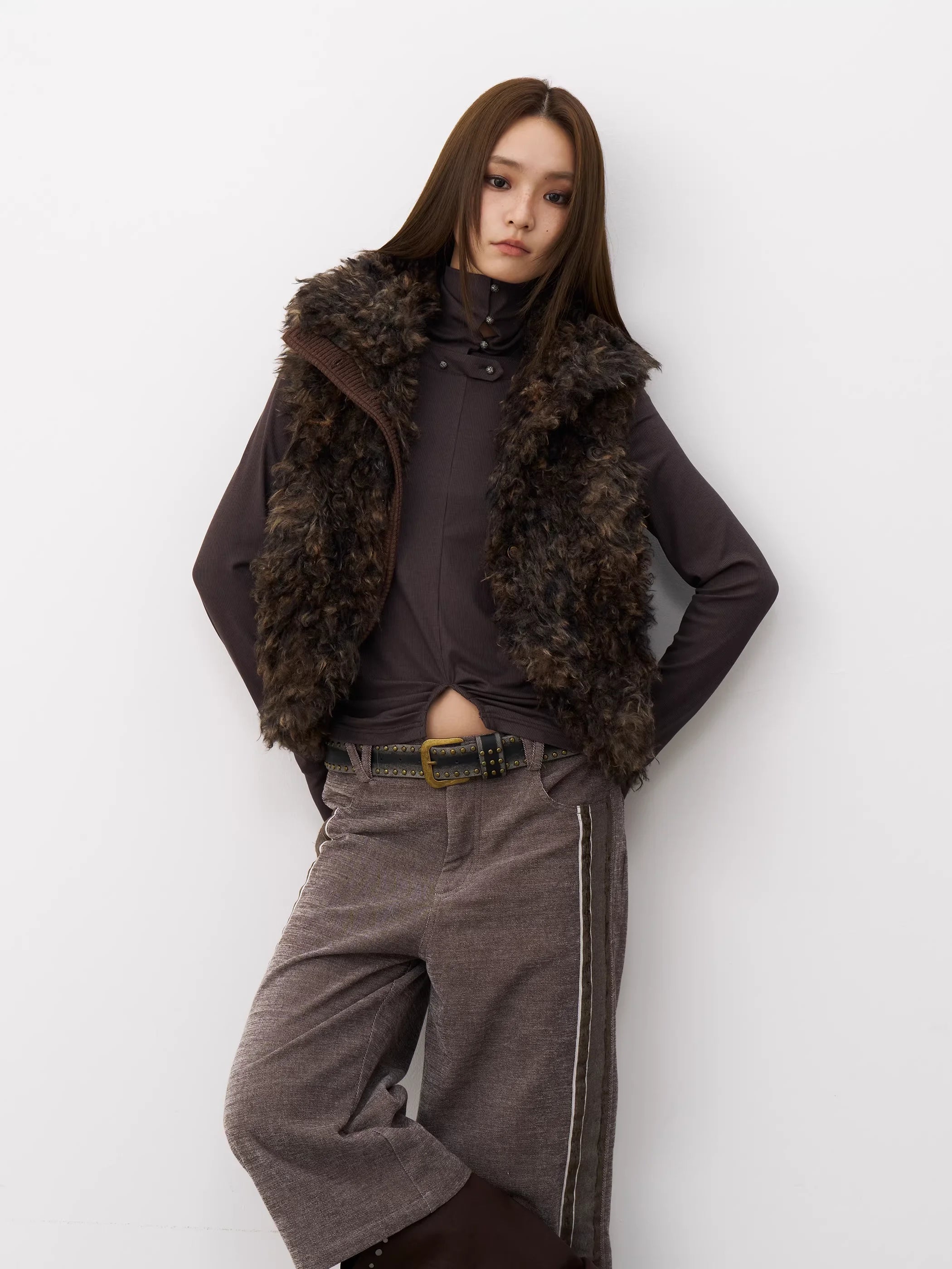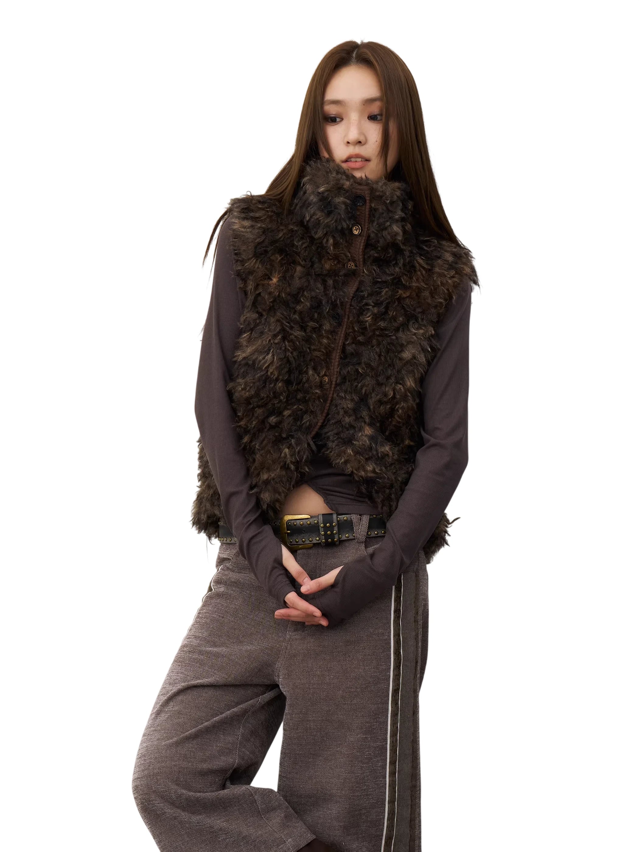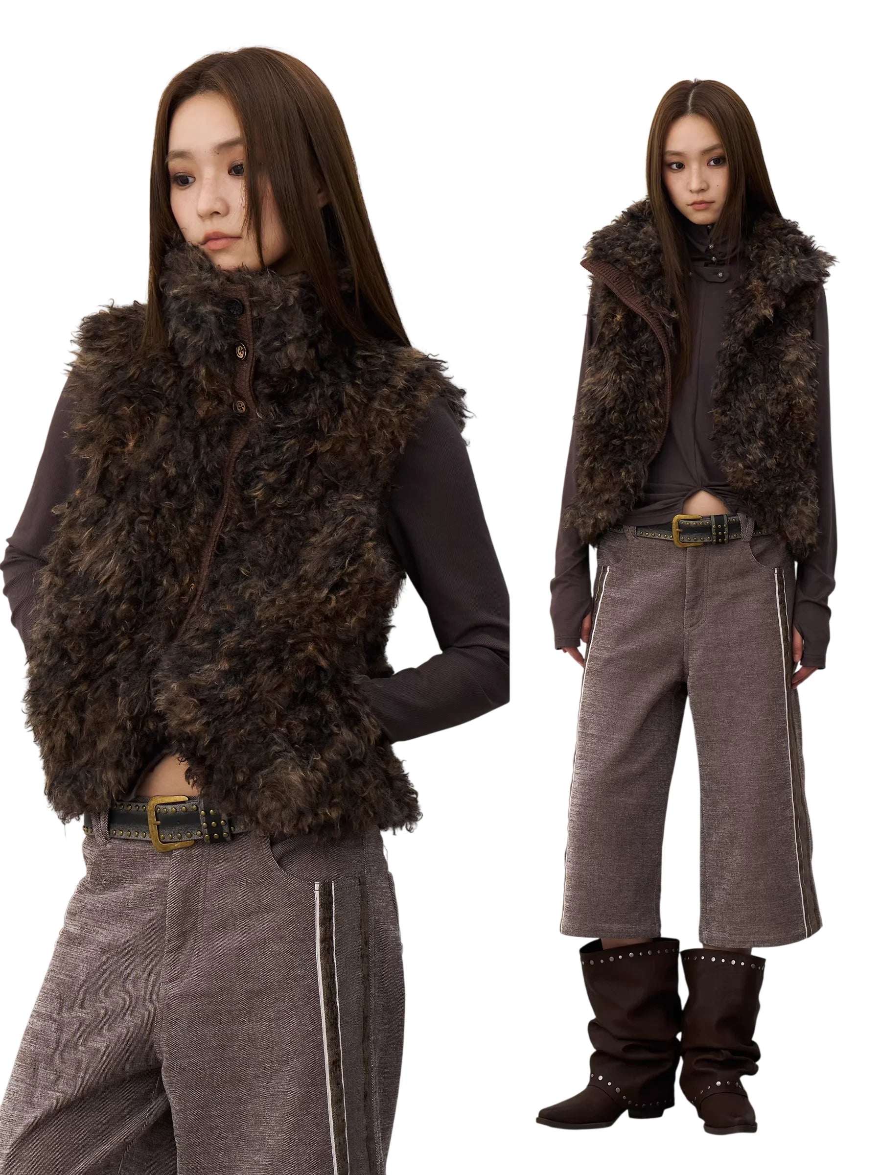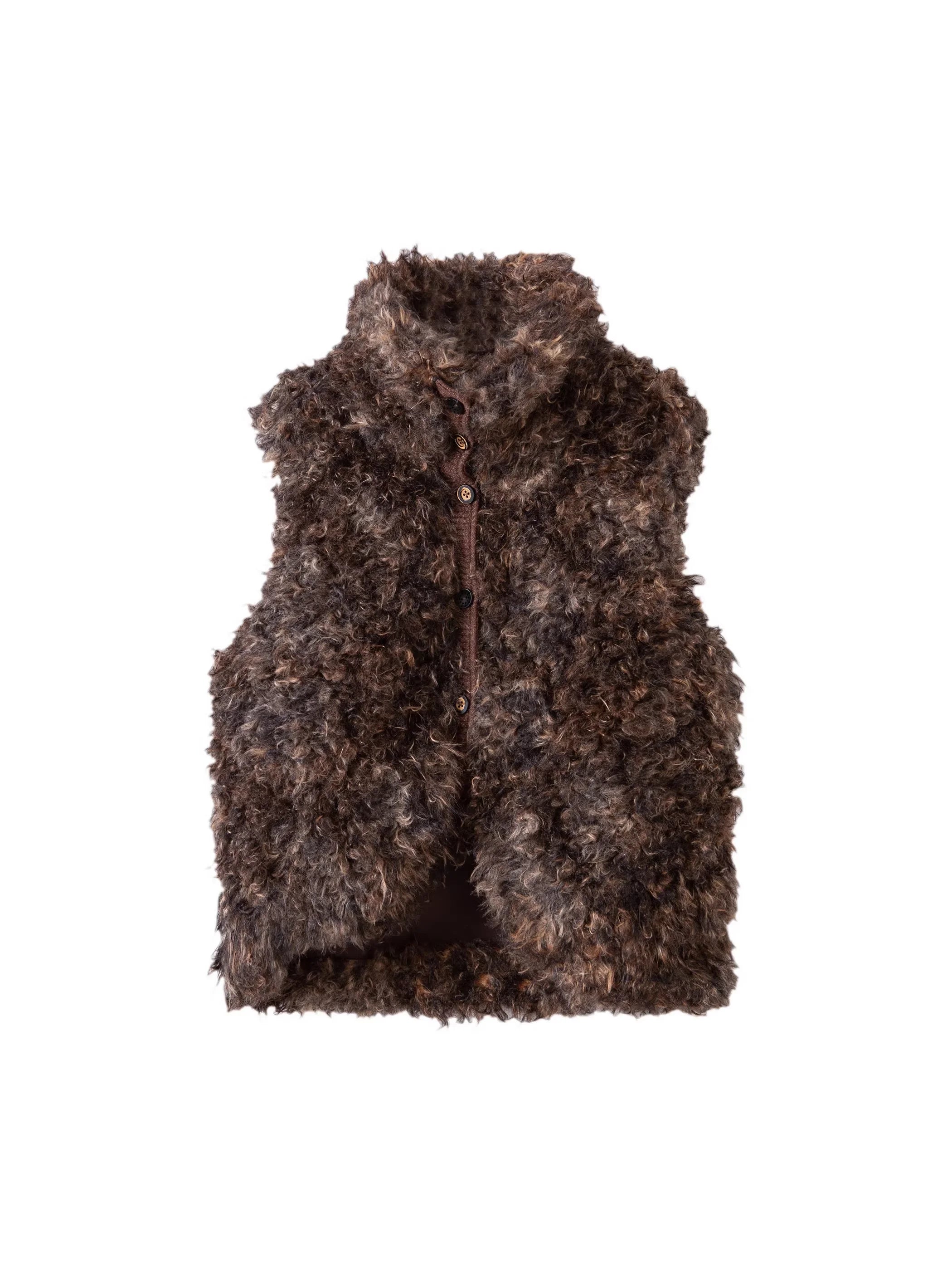 Stay stylish and warm in this women's winter fleece vest, featuring a cozy faux shearling design complemented by unique knitted patchwork accents. The vest includes front button detailing for easy layering over your favorite tops, making it a versatile addition to your cold-weather wardrobe. Ideal for casual outings or adding a textured element to your winter looks.