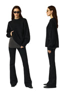 This women's oversized pullover sweater is crafted from 100% wool for a soft and cozy feel. Featuring a chunky double ribbed crew neckline, dropped shoulders, and long sleeves with ribbed cuffs, it delivers both warmth and relaxed style. The ribbed hem adds to its laid-back silhouette, making it a perfect choice for comfortable everyday wear.