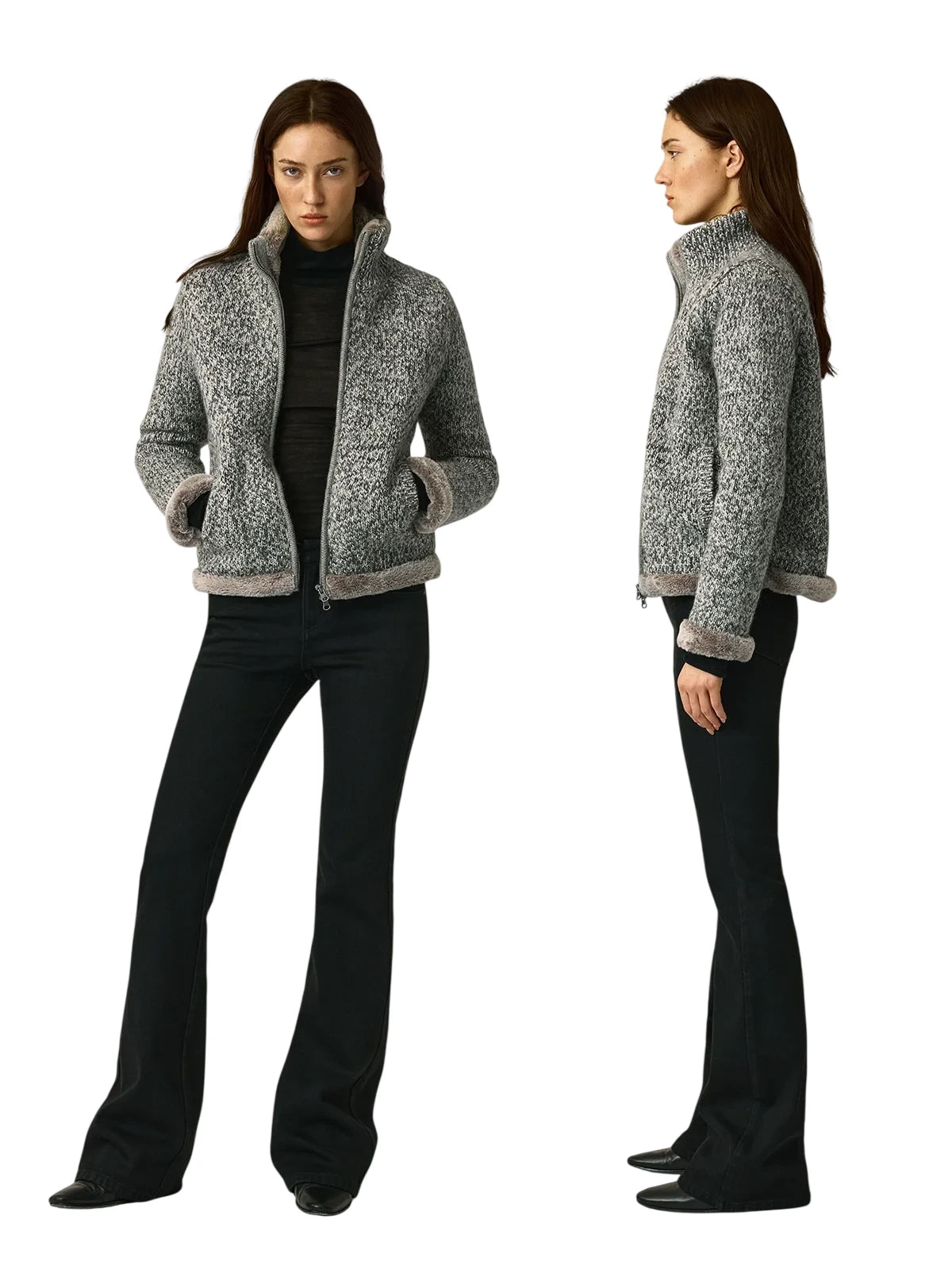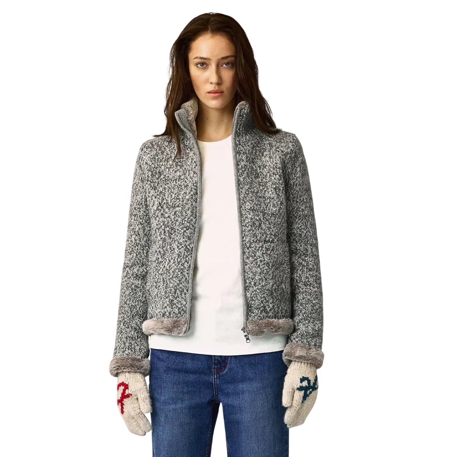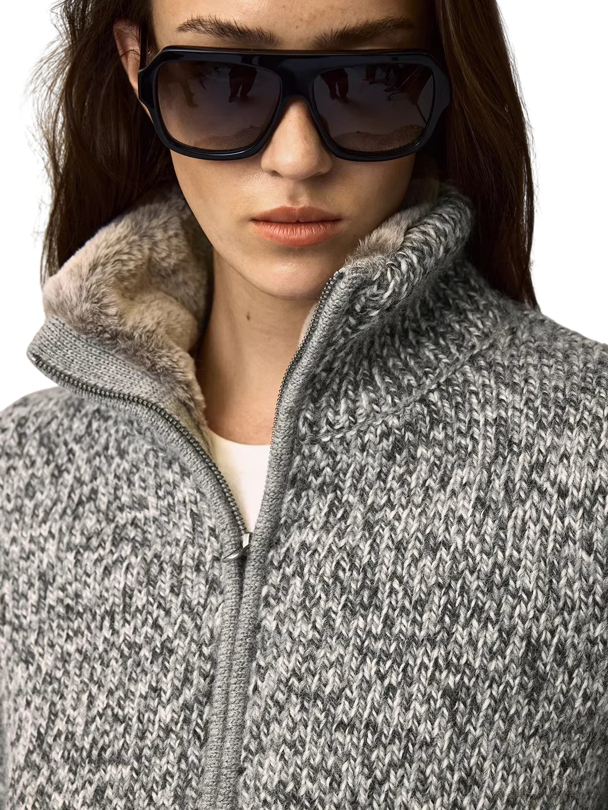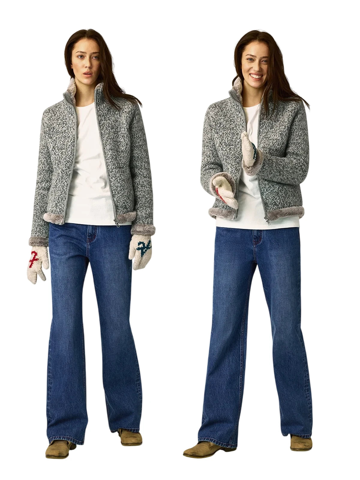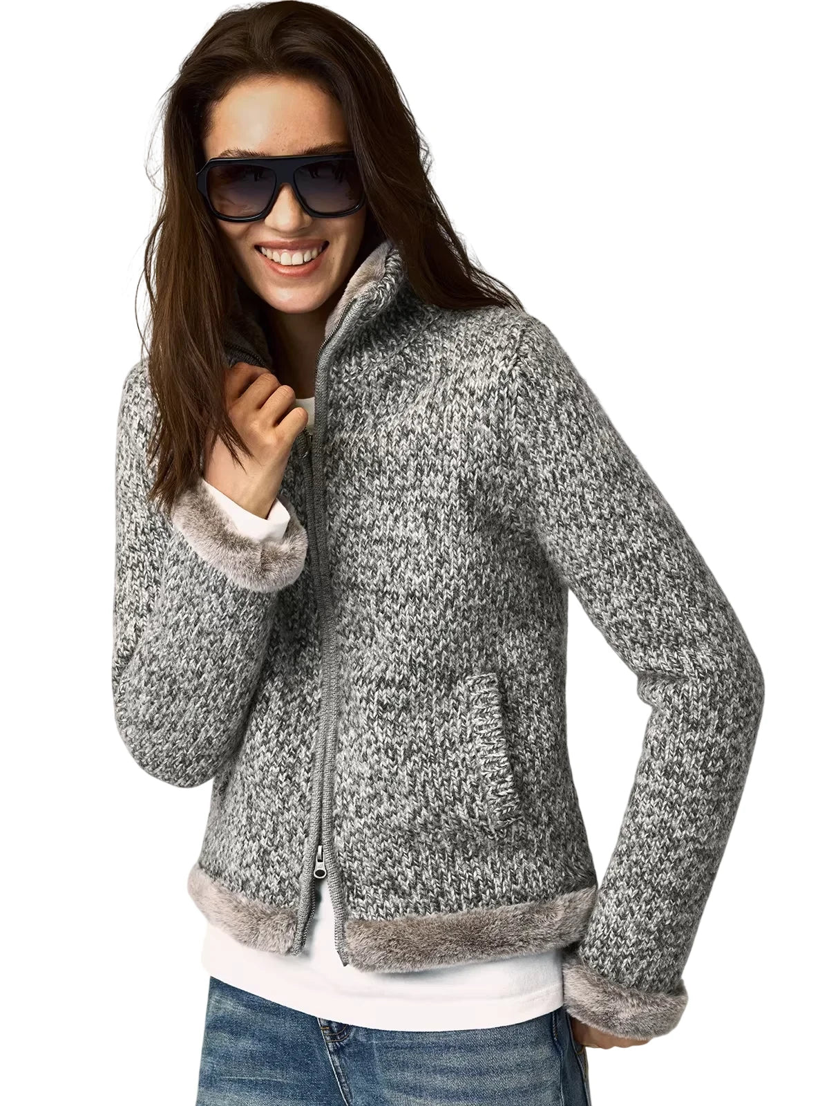 alright then Merino Wool Zip-Up Sweater Jacket with Faux Fur Trim