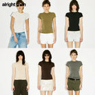 alright then Women's Slim Fit Crew Neck Cotton T-Shirt - Short Sleeve