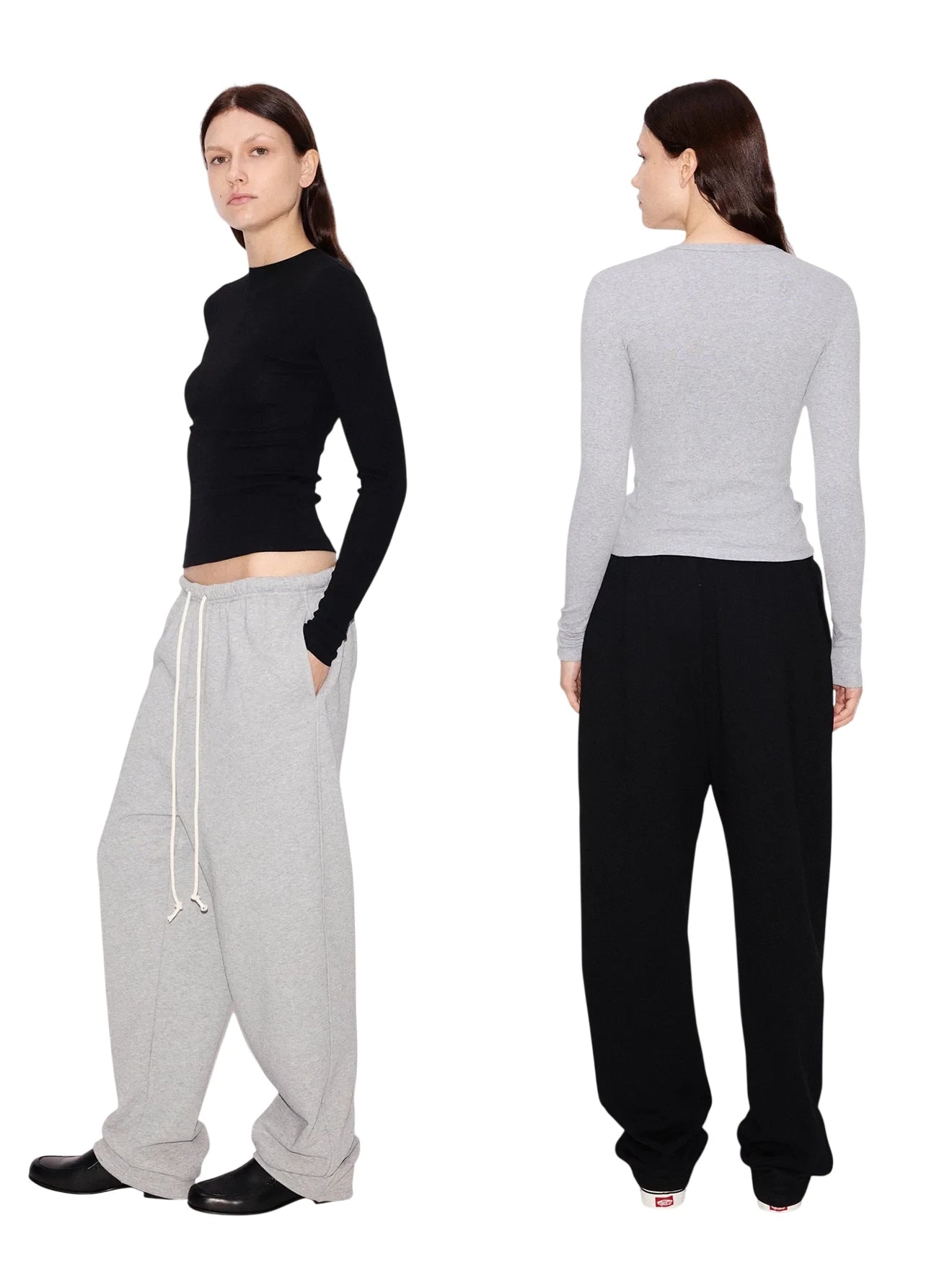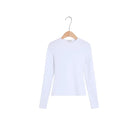 Elevate your everyday style with this women's slim fit long sleeve top. Designed with a classic crew neck and regular shoulder cut, this top offers a sleek and flattering silhouette. Made with stretch fabric, it provides comfort and a form-fitting look that contours to your shape. Available in black, white, and heather gray, it's perfect for pairing with jeans, sweatpants, or layering in versatile outfits.