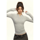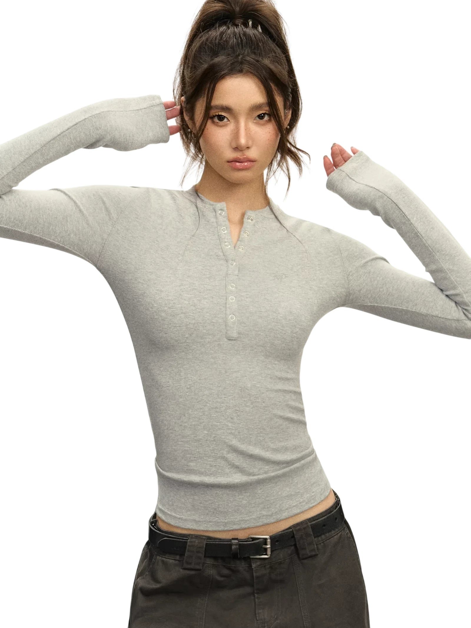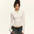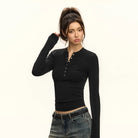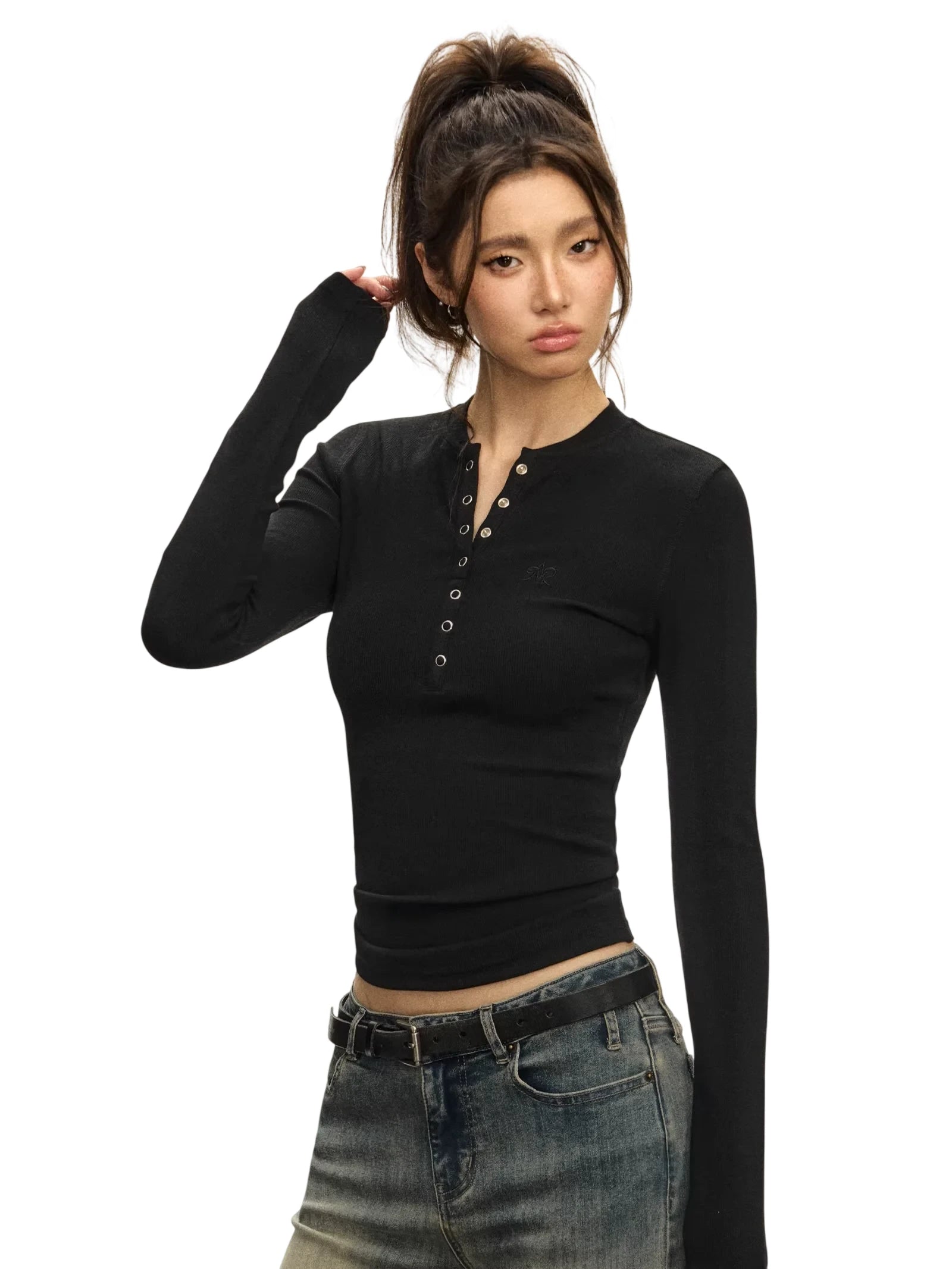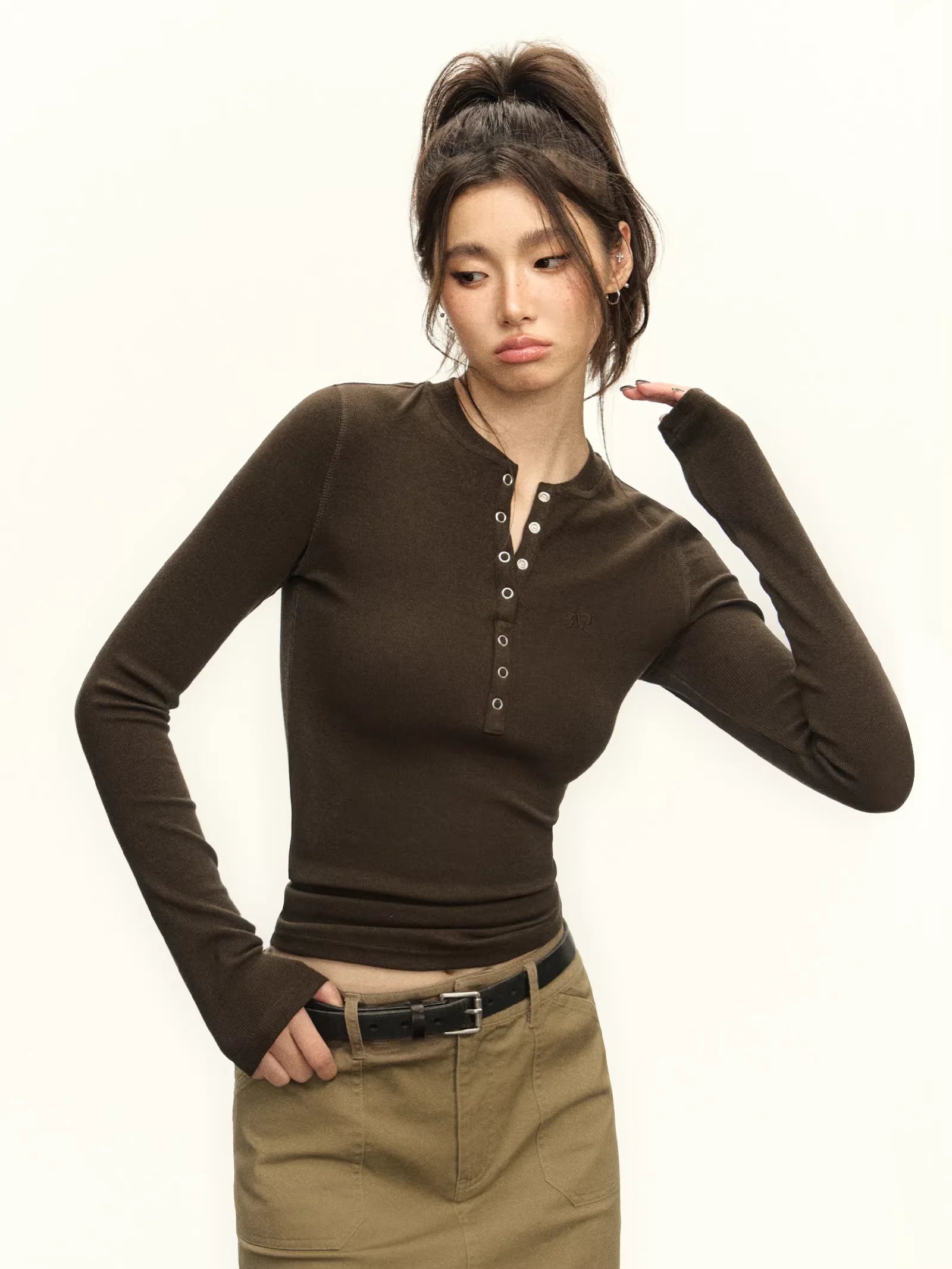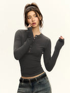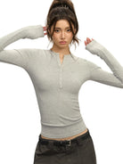 Stay stylish and comfortable with this women's slim fit Henley top, perfect for layering in autumn. Featuring a long-sleeve design and a classic Henley collar with button-down detailing, this top offers a flattering fit that hugs the body. Made from soft, stretchy fabric, it's ideal as a base layer or worn on its own. Available in multiple versatile colors including white, black, brown, and grey.