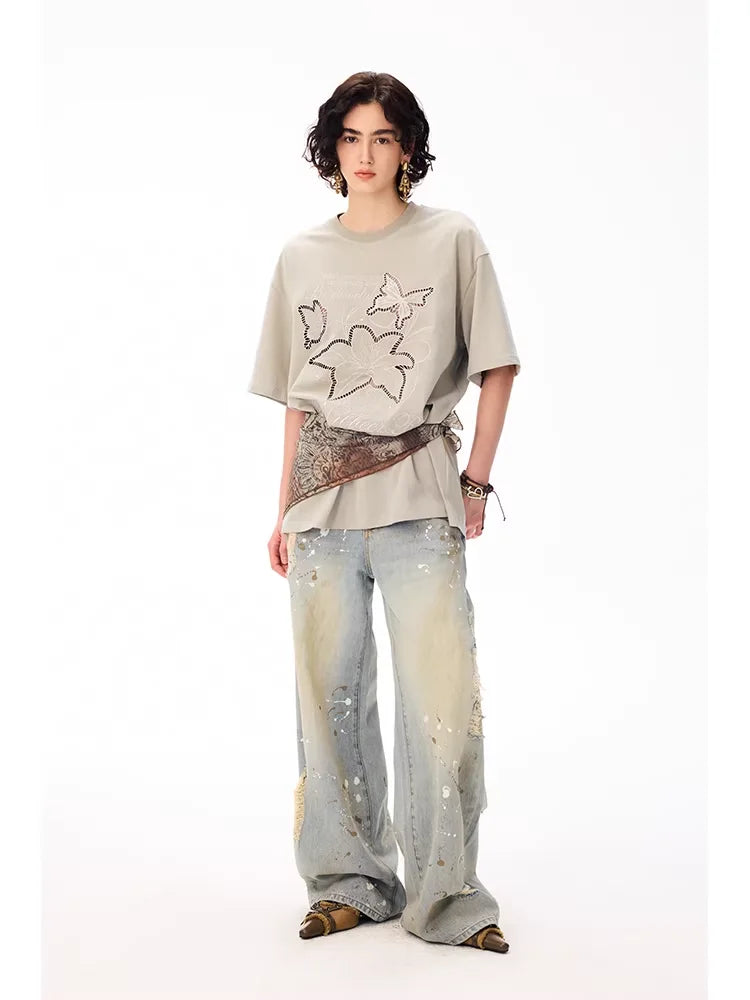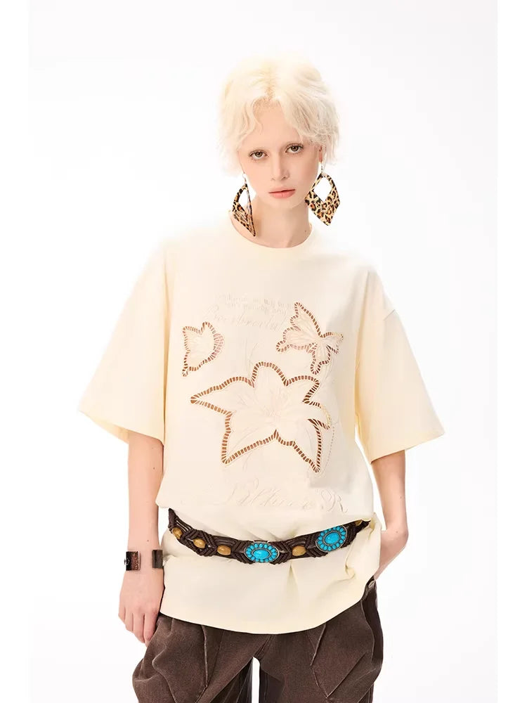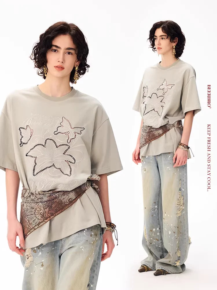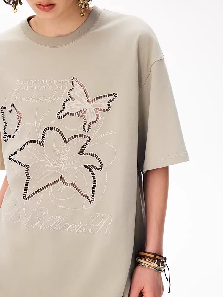 BeerBro Butterfly Cut-Out Embroidered Loose T-Shirt