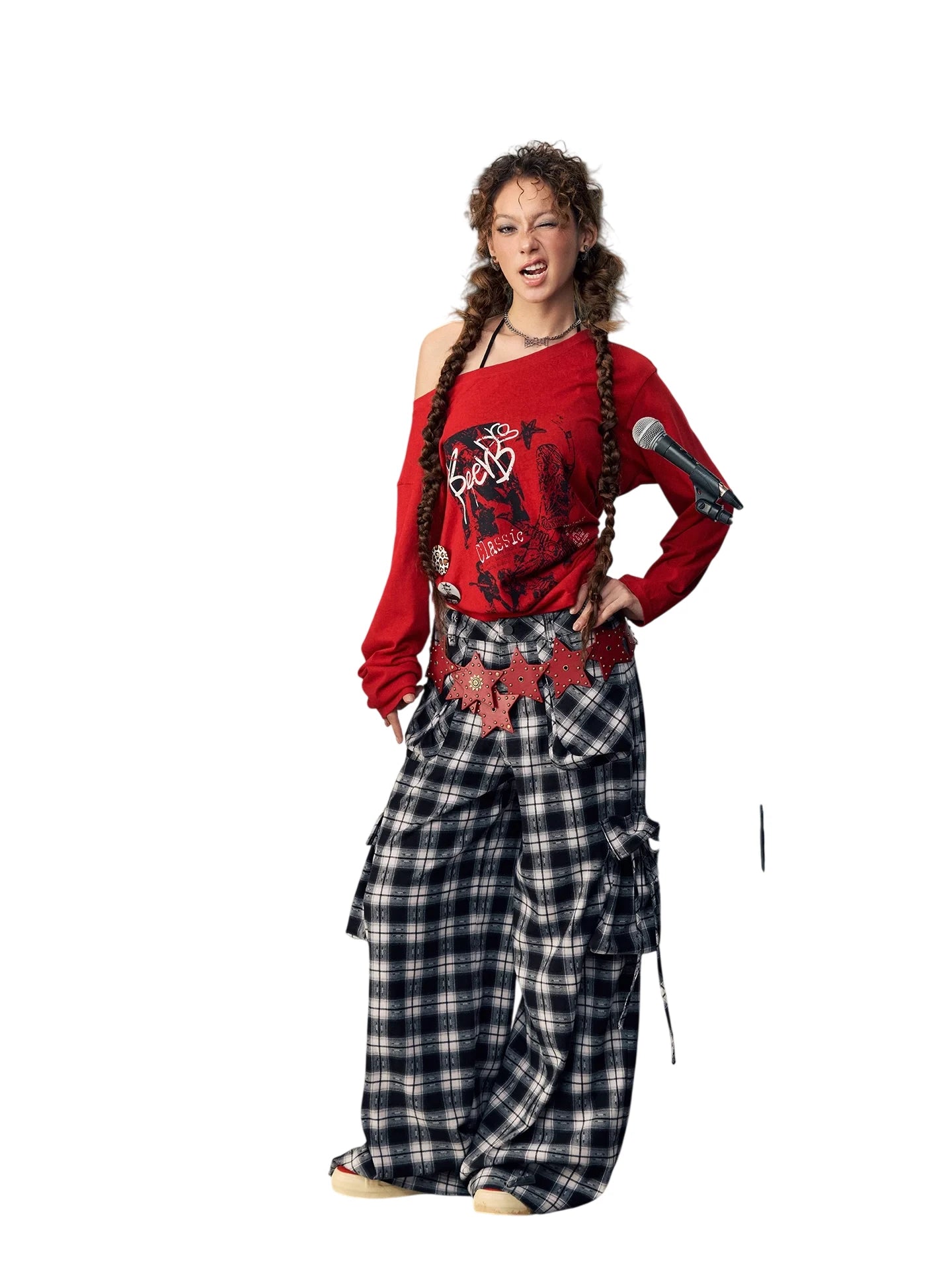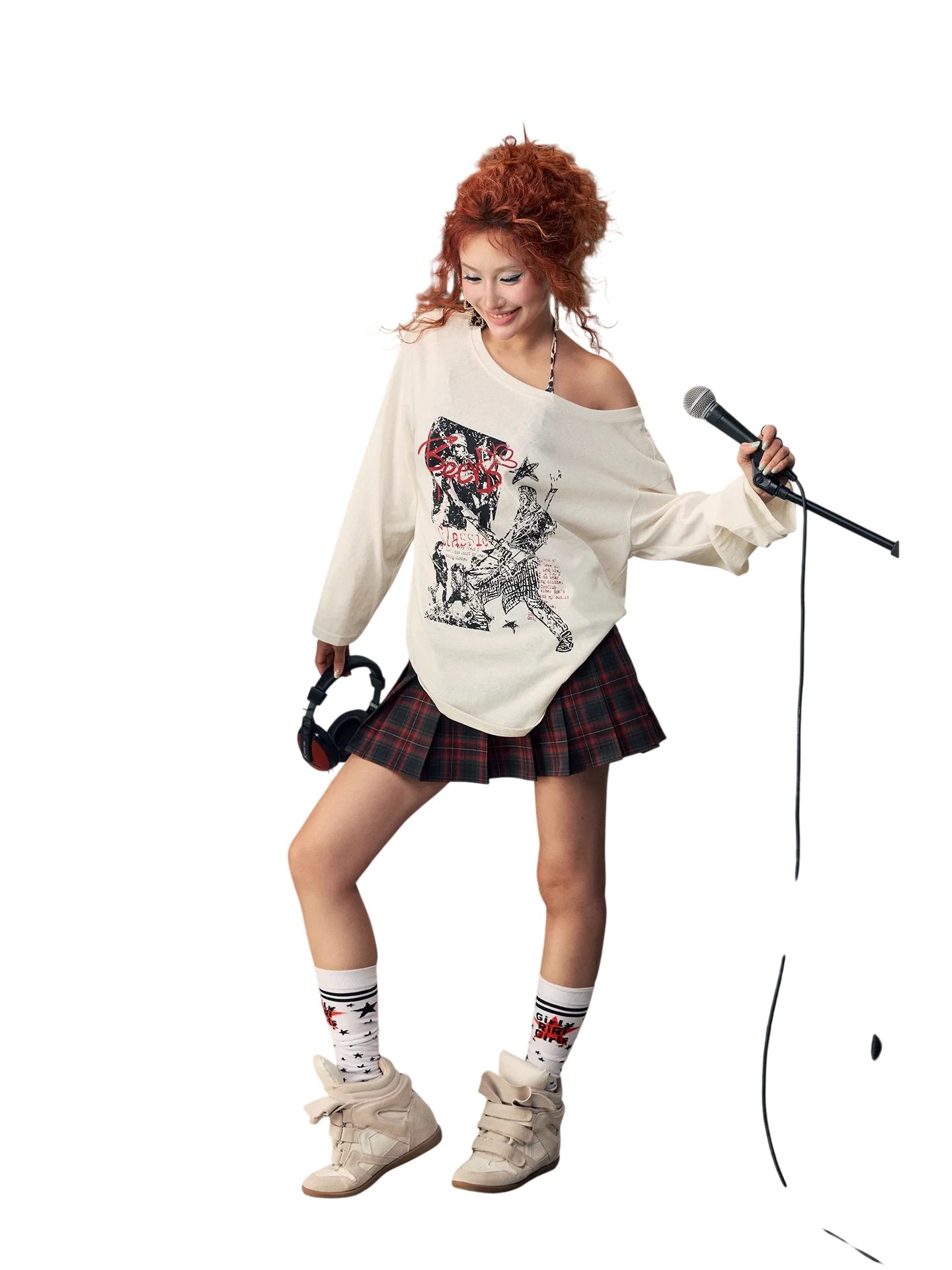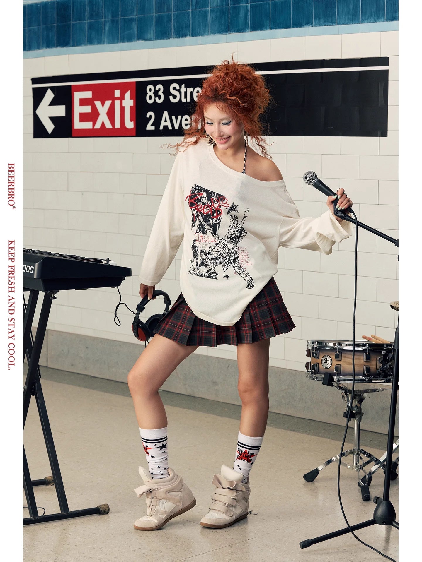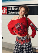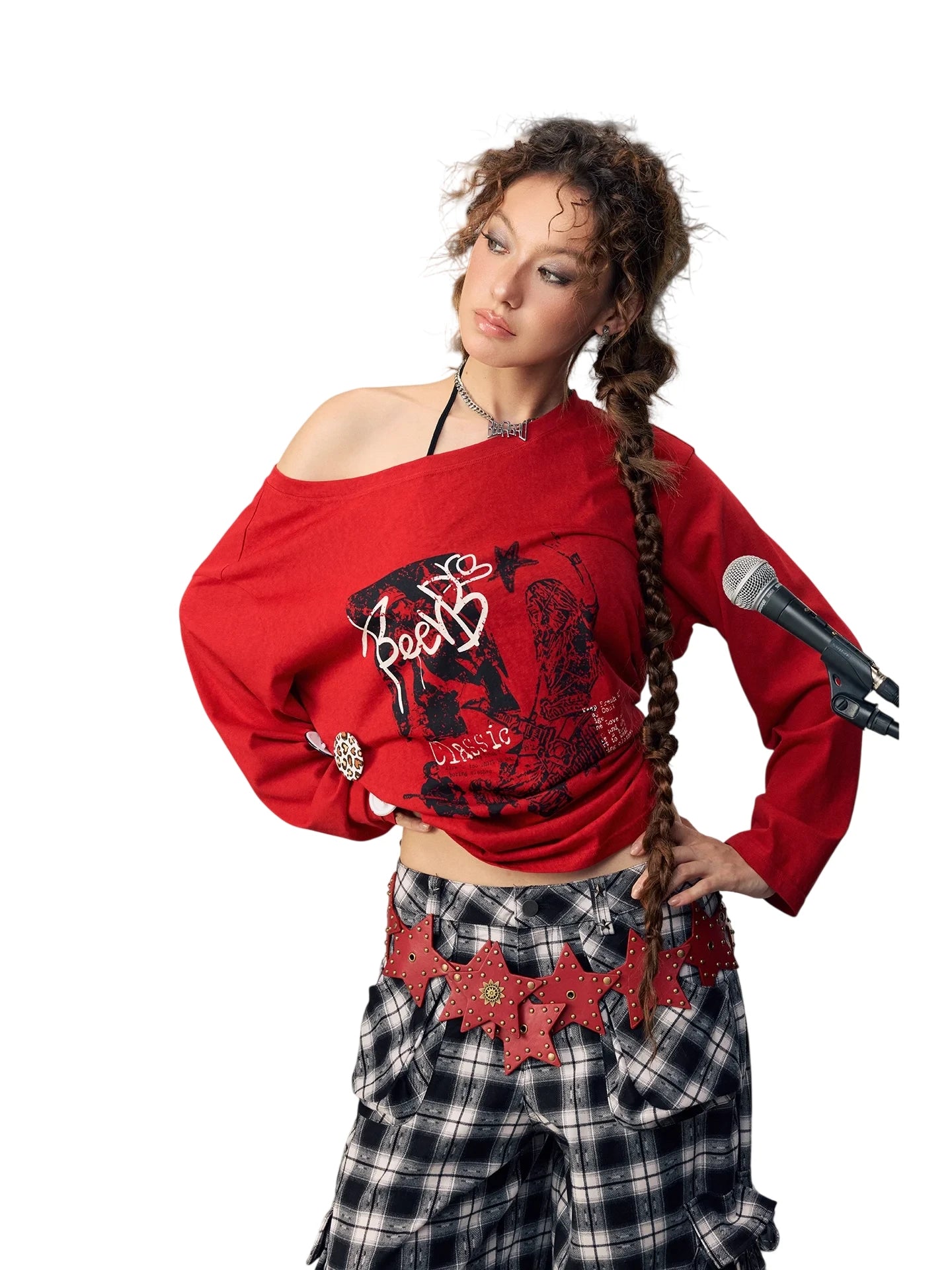 Elevate your autumn wardrobe with this stylish and versatile off-shoulder long sleeve t-shirt for women. Featuring a soft, natural touch fabric and a loose, relaxed fit, this top easily transitions from day to night. The convertible neckline allows multiple wearing styles, perfect for layering or making a statement on its own. Pair it with plaid skirts or pants for a bold, streetwear-inspired look.