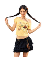 Stay stylish and playful this summer with this off-shoulder slim fit T-shirt designed for women. Featuring whimsical cartoon graphics with a fun 'beer bro' theme, this trendy cropped top pairs perfectly with skirts or jeans for a casual day out. Ideal for warm weather, the fitted silhouette flatters your figure while the off-shoulder style adds a touch of charm.