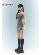 BeerBro Women's Black Spaghetti Strap Bodycon Mini Dress
