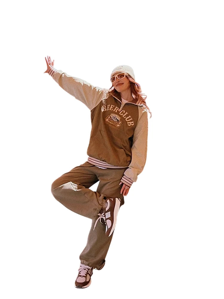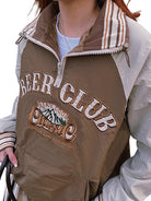 BeerBro Women's Color Block Half-Zip Sweatshirt - Autumn Winter Loose Fit