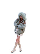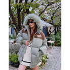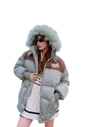 BeerBro Women's Colorblock Winter Puffer Jacket with Faux Fur Hood