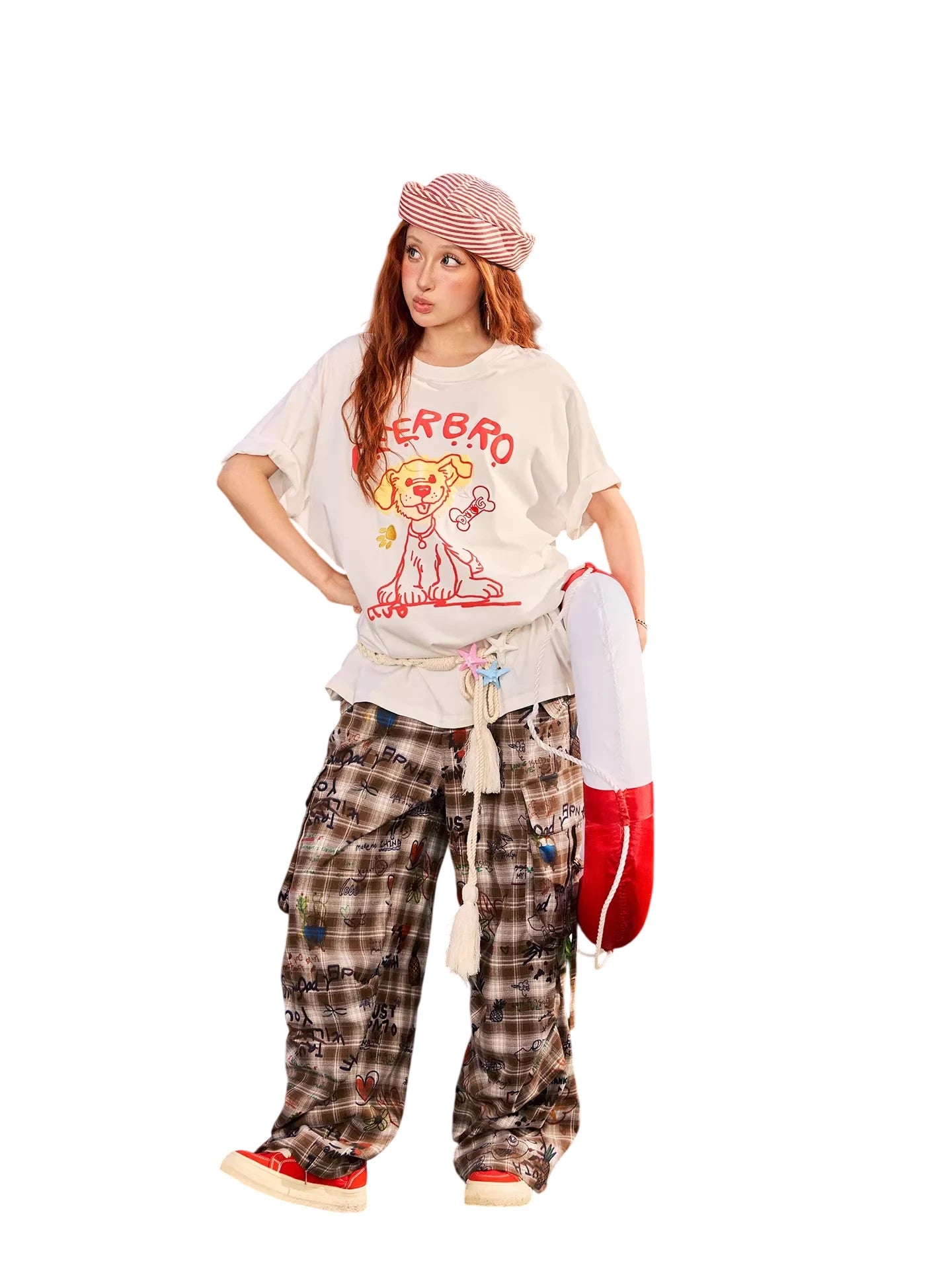 Stay cool and stylish with this breathable lyocell T-shirt designed for women. Featuring a playful dog illustration with bold text and fun paw and bone graphics, this loose-fit top offers both comfort and a light-hearted, casual look. Perfect for relaxed days out, its short sleeves and airy fabric make it an easy go-to for warm weather fashion.