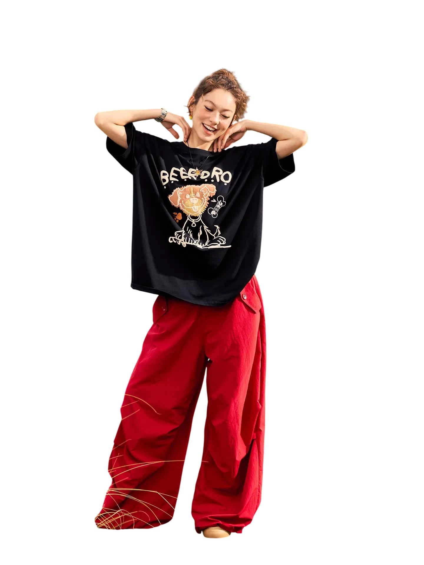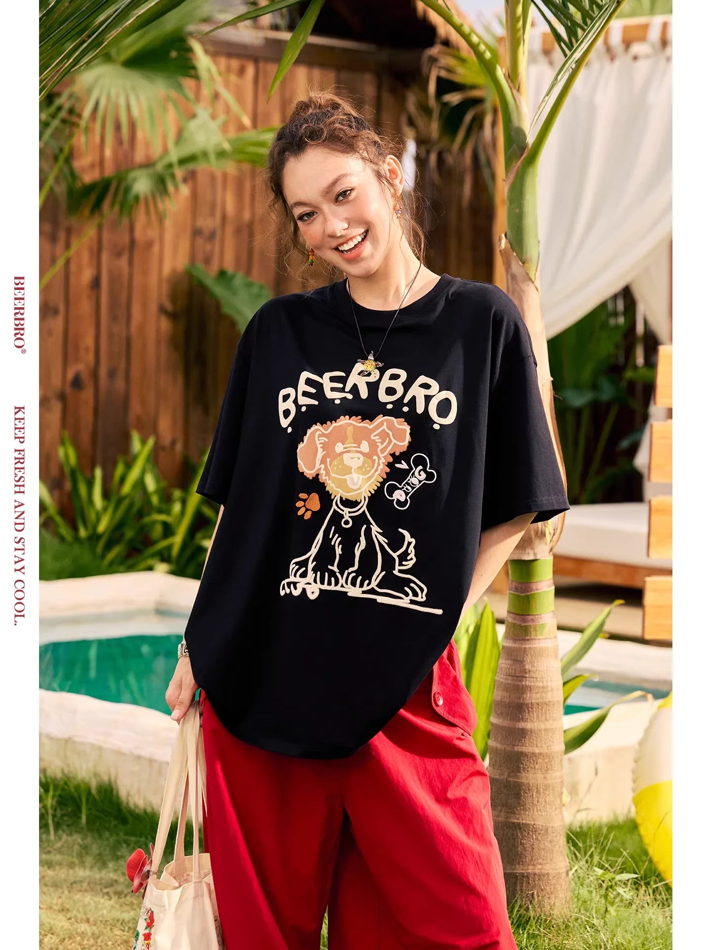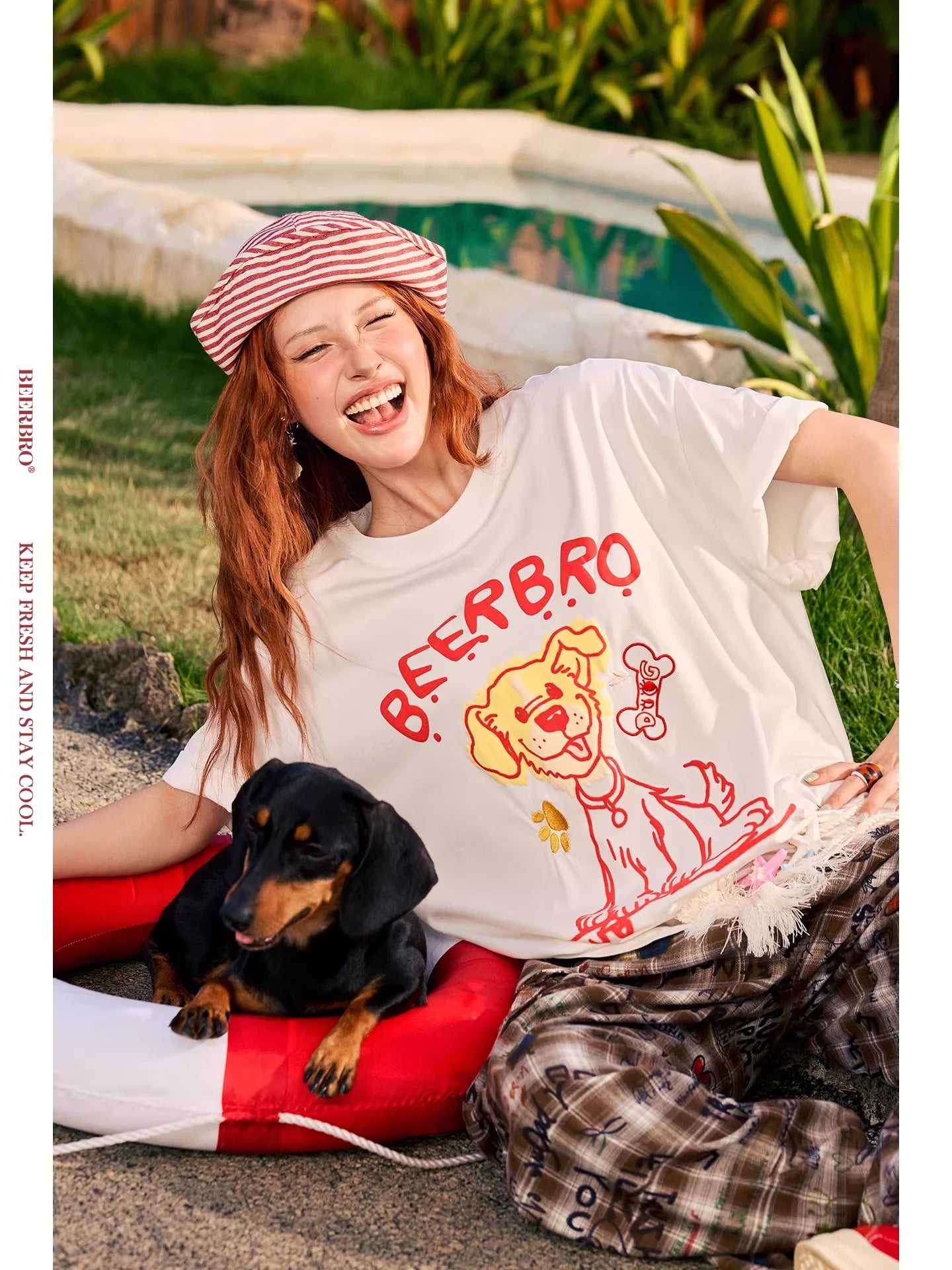 BeerBro Women's Lyocell Loose Fit Dog Print T-Shirt