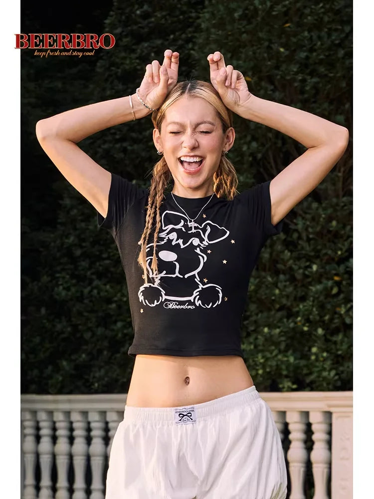BeerBro Women's Slim Fit Dog Graphic Short Sleeve T-Shirt