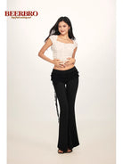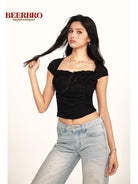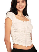 BeerBro Women's Sweetheart Neck Lace Ruched Short Sleeve Top