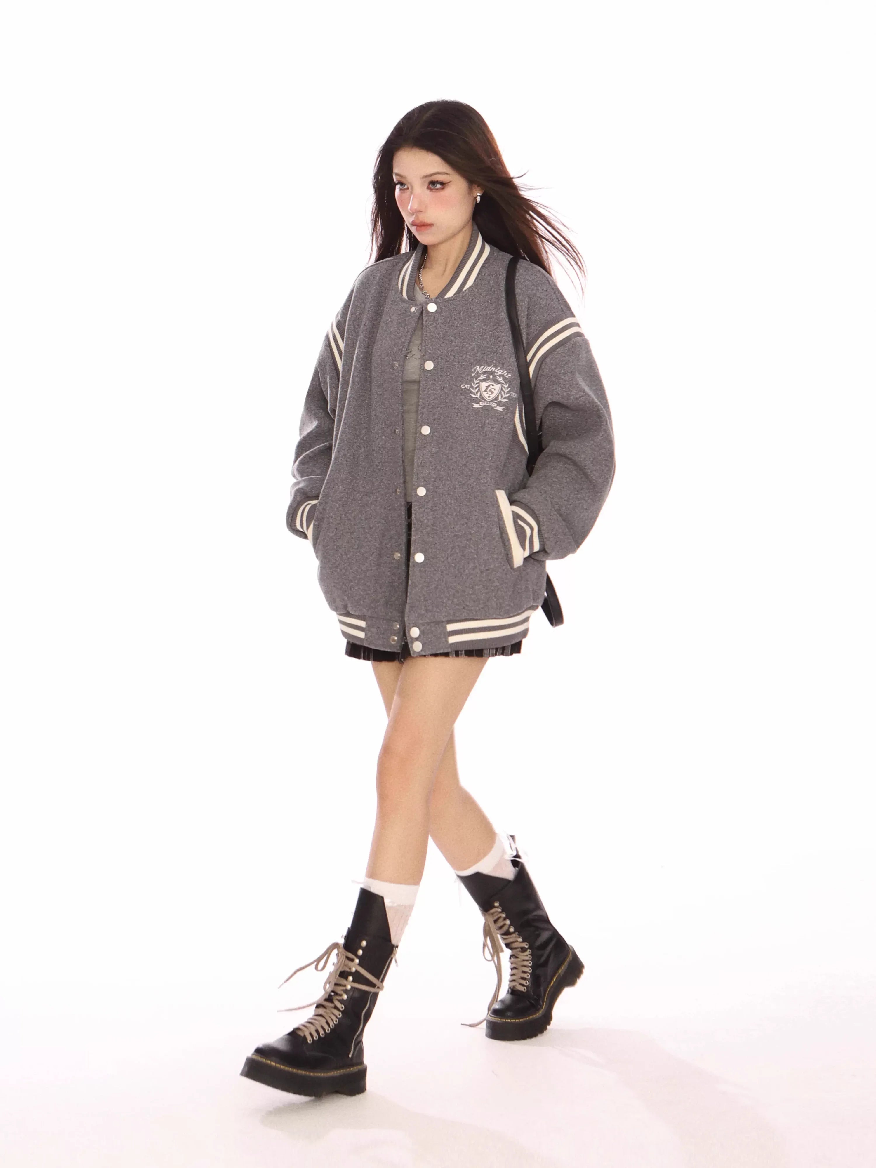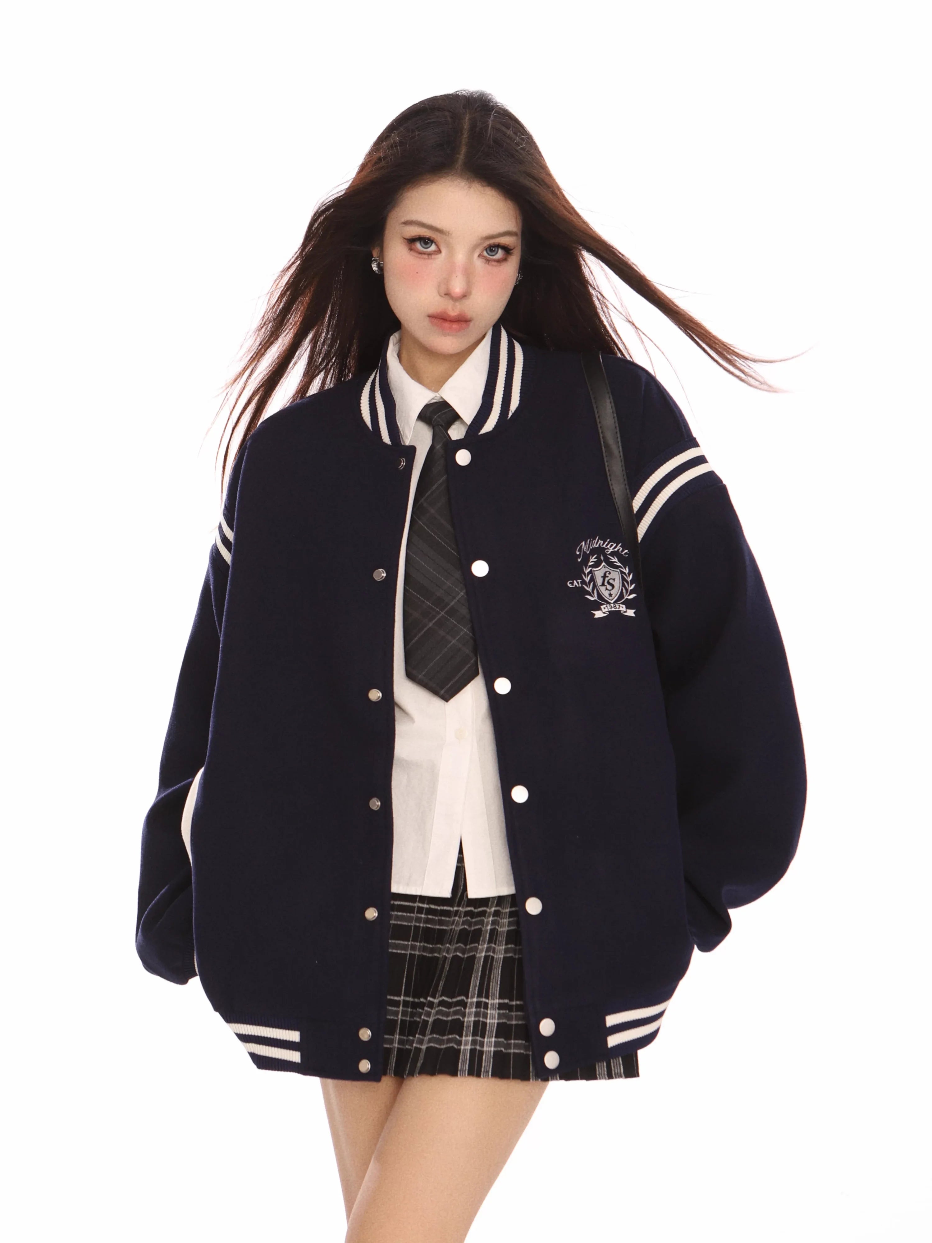 Designed in a relaxed, loose fit, this jacket is perfect for layering during the autumn season. Pair it effortlessly with skirts, shirts, or casual wear to achieve a youthful preppy look that's both stylish and comfortable.