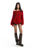BIGGOLD STUDIO Women's Off-Shoulder Knit Sweater – Oversized Warm Pullover for Autumn Winter