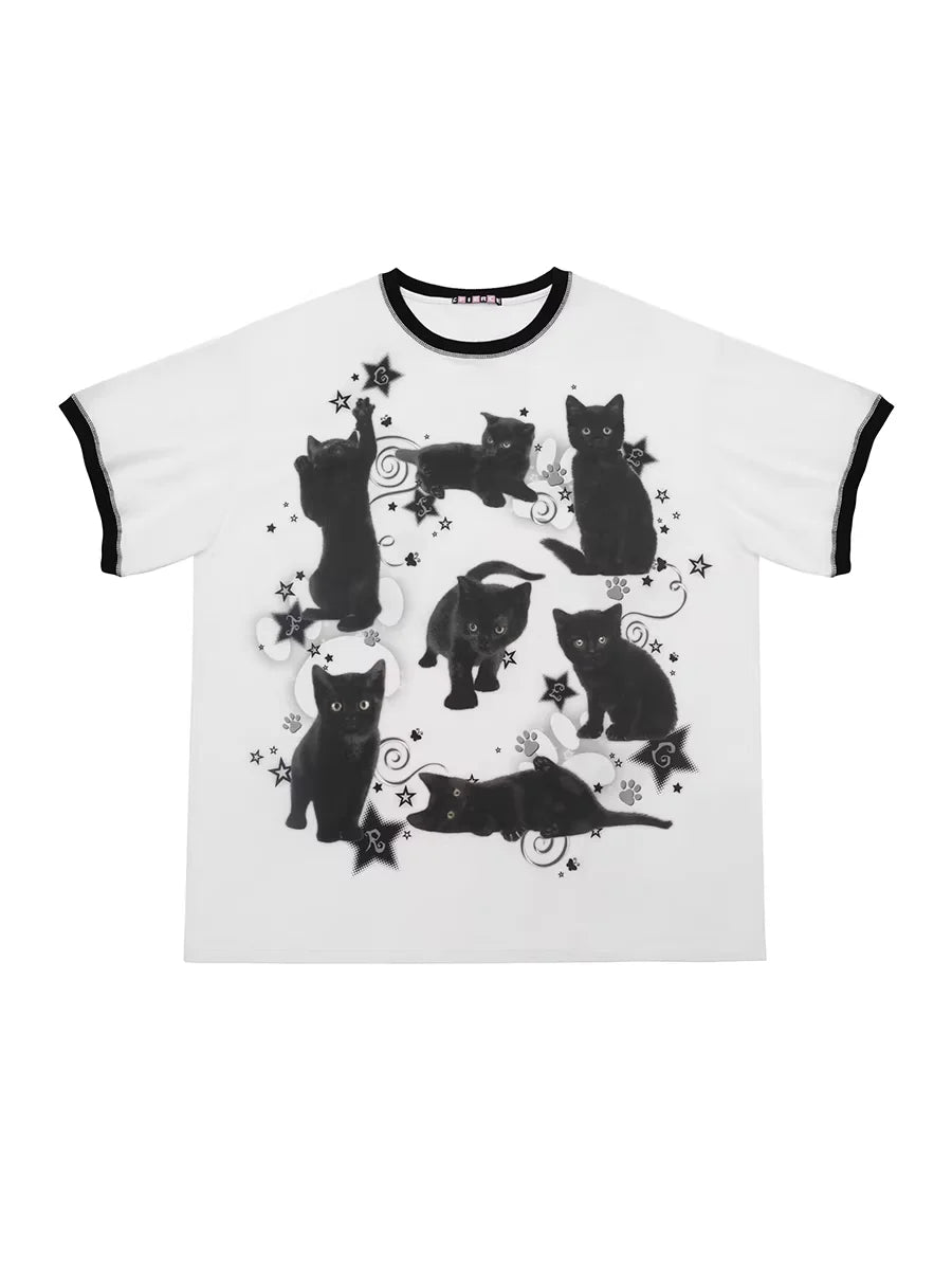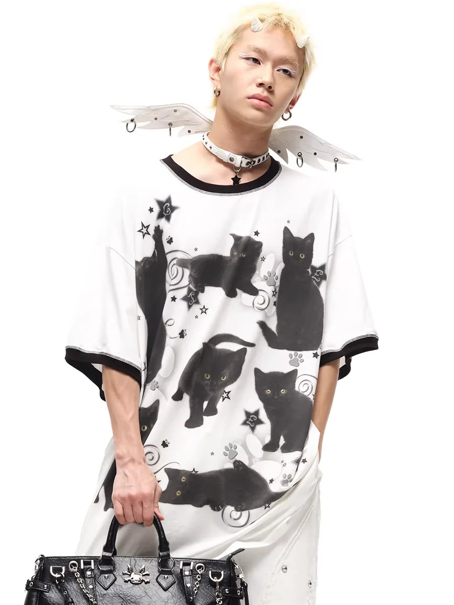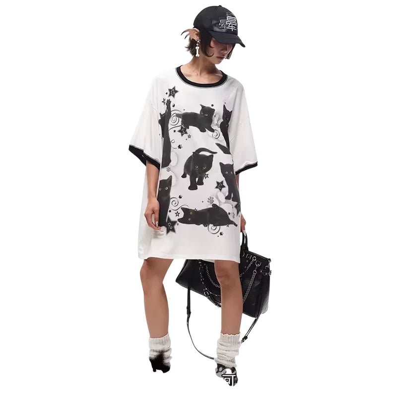 CFIERCE Black Cat Graphic Oversized T-Shirt Dress