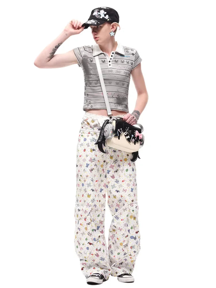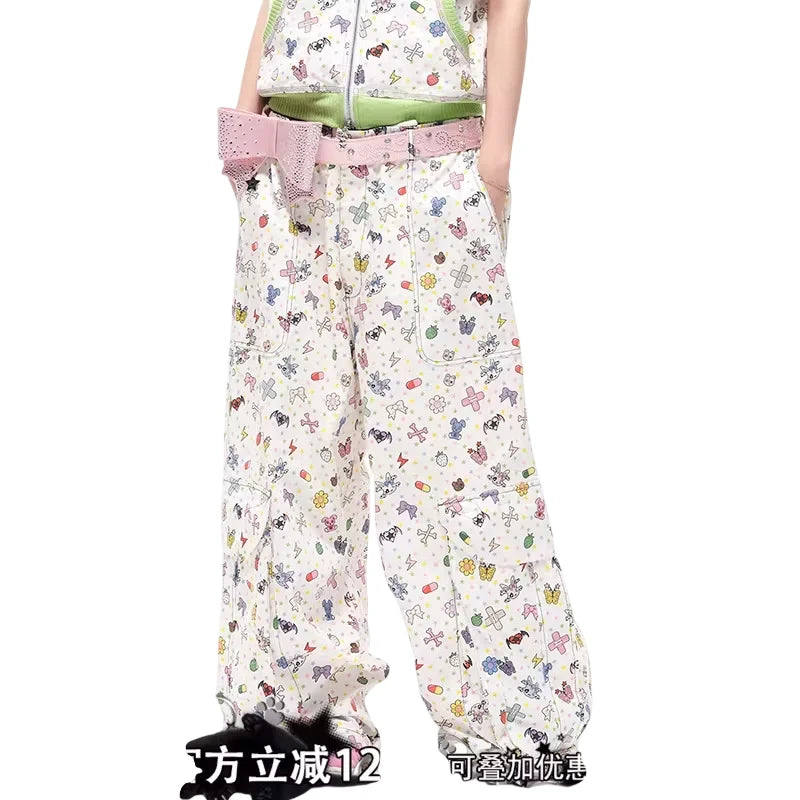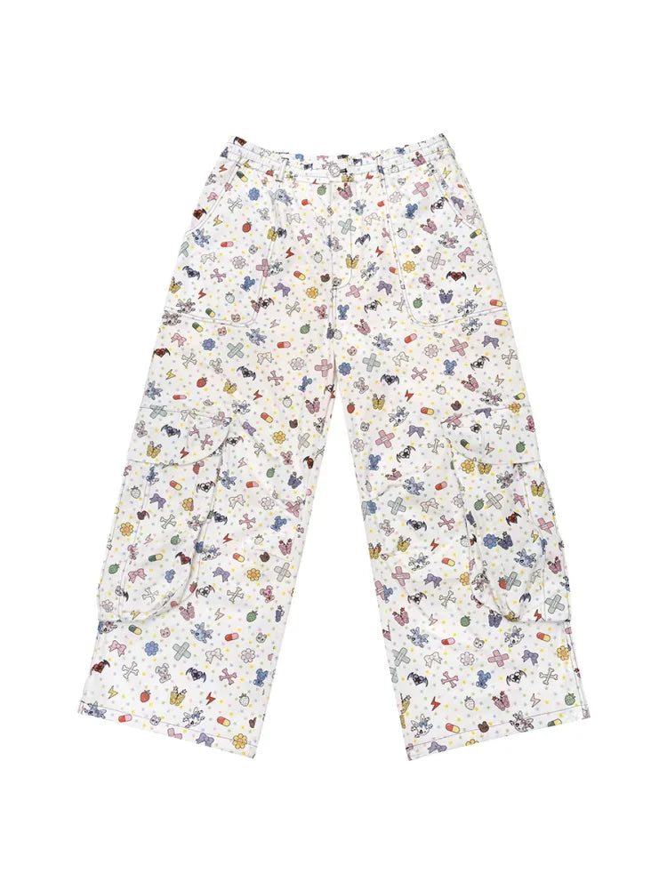 CFIERCE Whimsical Cartoon Print Wide-Leg Cargo Pants
