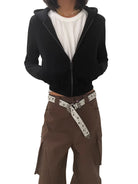 Fax Copy Express Fleece-Lined Cropped Zip Hoodie