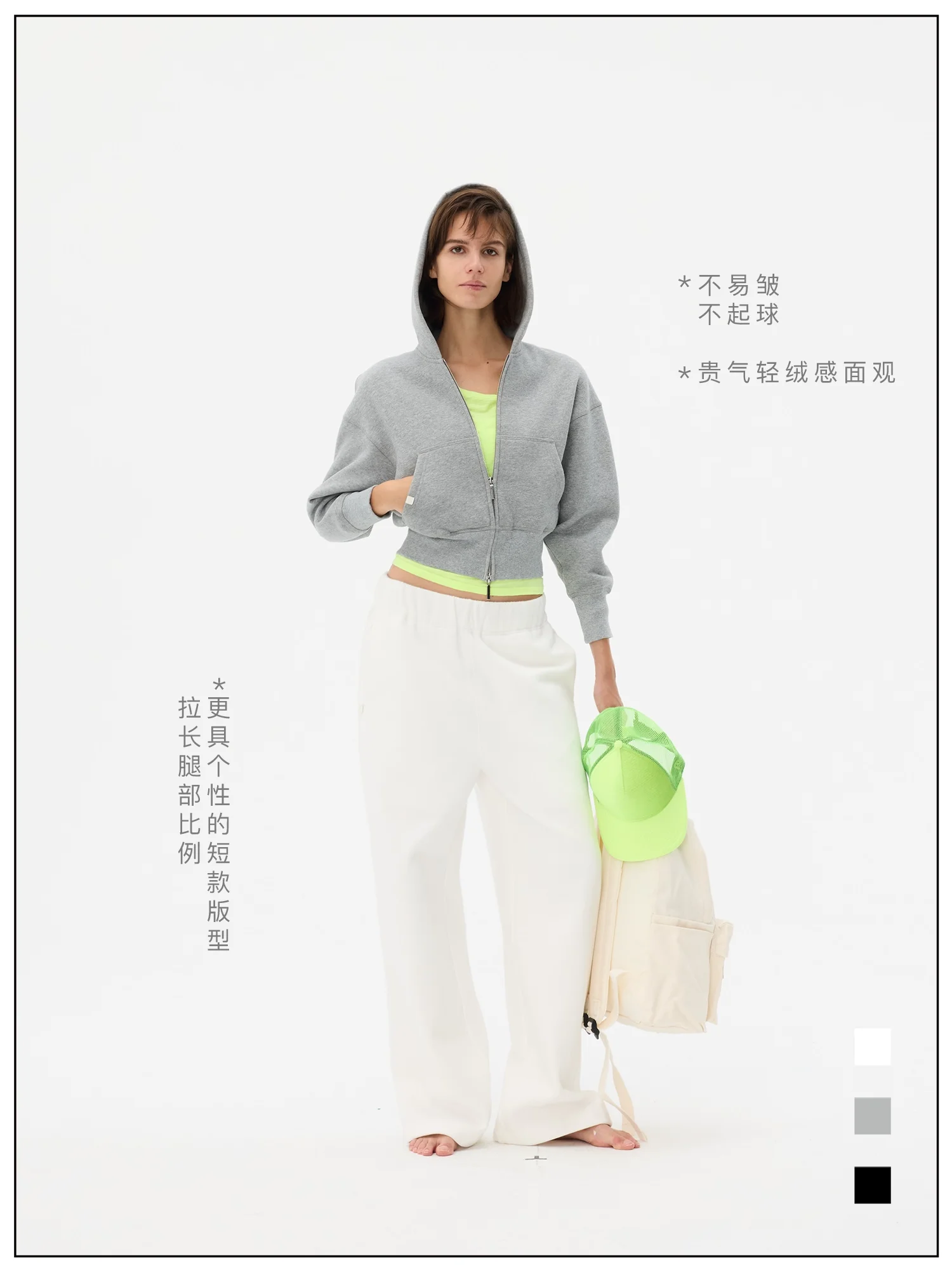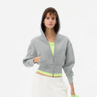 Elevate your casual wear with this stylish waist-cinched cropped hoodie, designed to enhance your silhouette. This zip-up sweatshirt features a flattering fitted waistband, a cozy hood, and practical front pockets. Layered effortlessly over a vibrant neon green top, it adds a modern edge to any relaxed outfit. Perfect for women seeking both comfort and contemporary style.