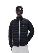 Stay warm and stylish during the colder months with this ultralight colorblock down jacket. Designed for both indoor and outdoor use, this men's jacket features a durable, water-resistant shell with level 4 protection and is filled with 90% white duck down for optimal insulation without added bulk.