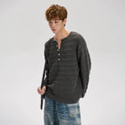 LOSTCTRL Retro Striped Henley Long Sleeve Shirt